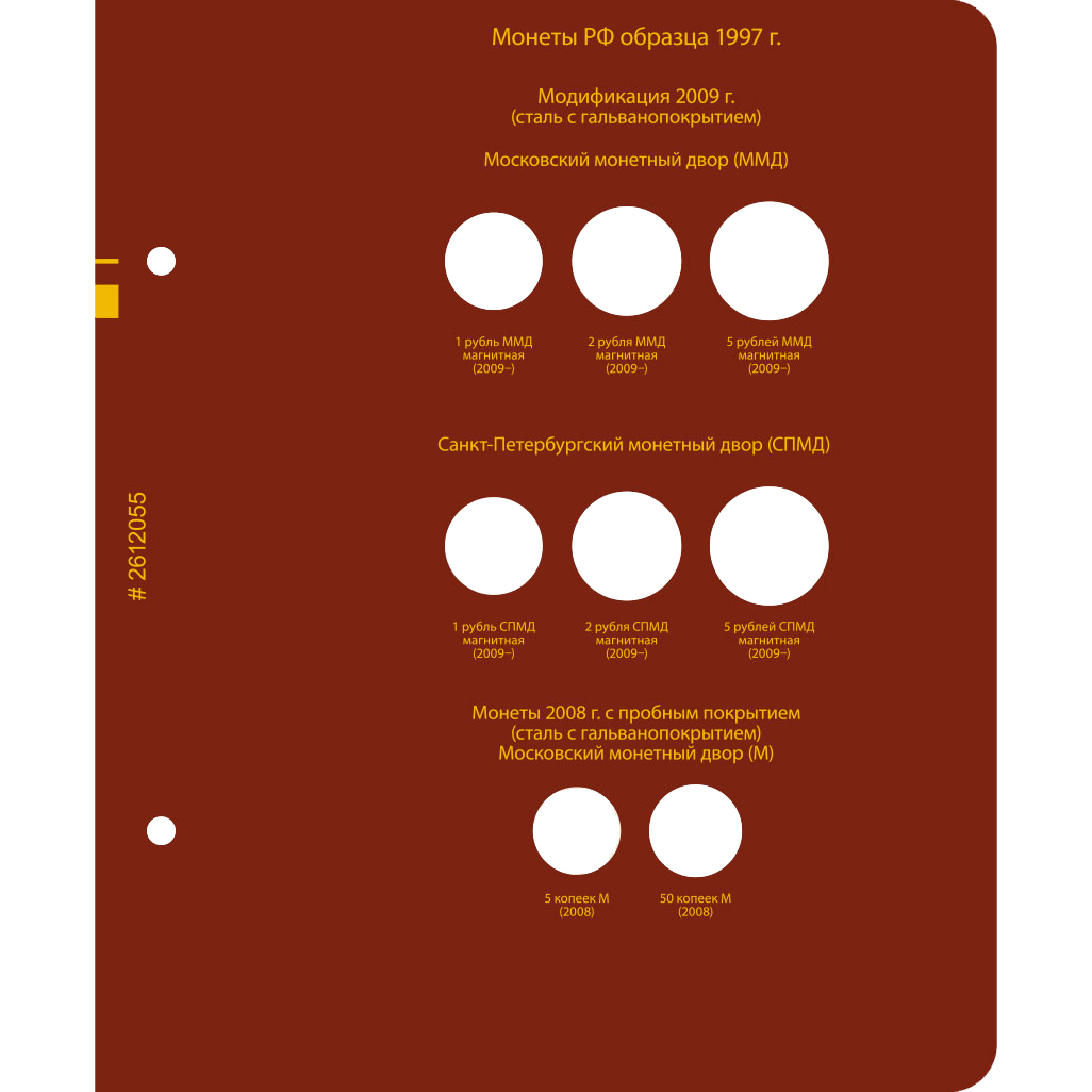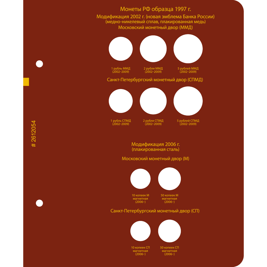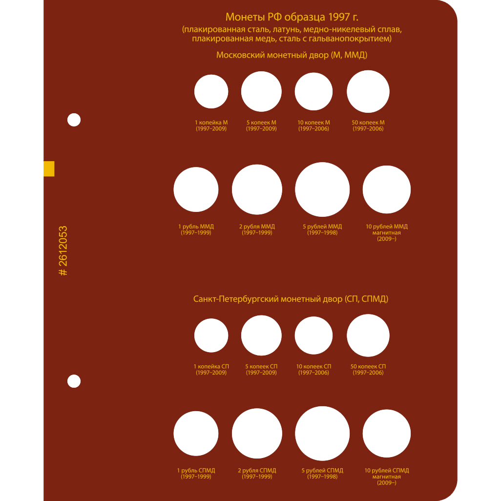 В альбоме подписаны ячейки для монет России с 1992 по 2016 год по образцам. В альбоме учитываются разновидности по металлу, изображению, знаку монетного двора.