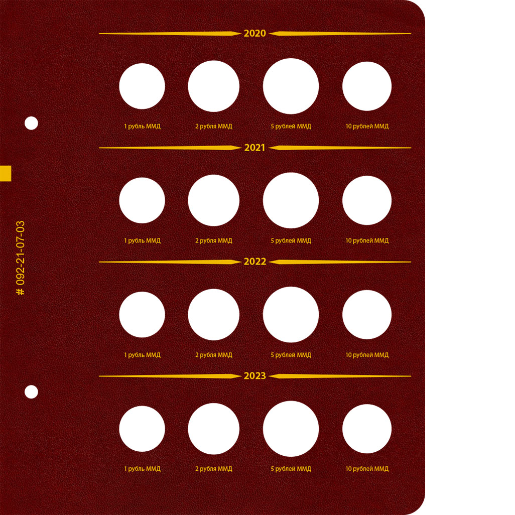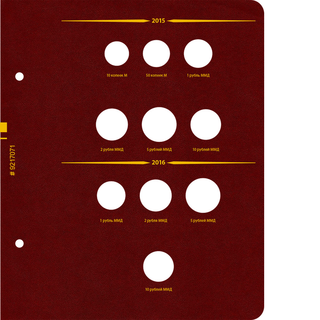 В альбоме подписаны ячейки для монет России регулярного чекана с 2015 года. Учитывается разделение на монетные дворы — ММД и СПМД, а также разновидности металлов — магнитный и немагнитный.