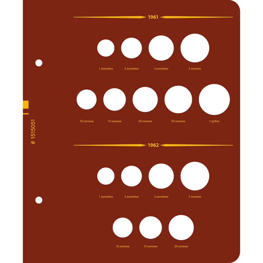 В альбоме подписаны ячейки для монет СССР регулярного чекана с 1961 по 1971 год.