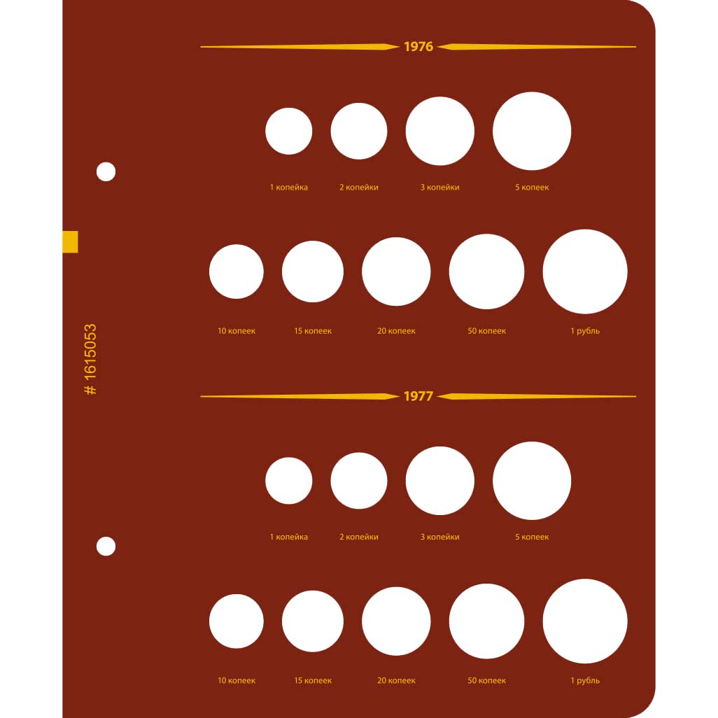 Альбом издательства “Альбо Нумисматико”. В альбоме — картонные листы с ячейками для монет. Каждая ячейка подписана.