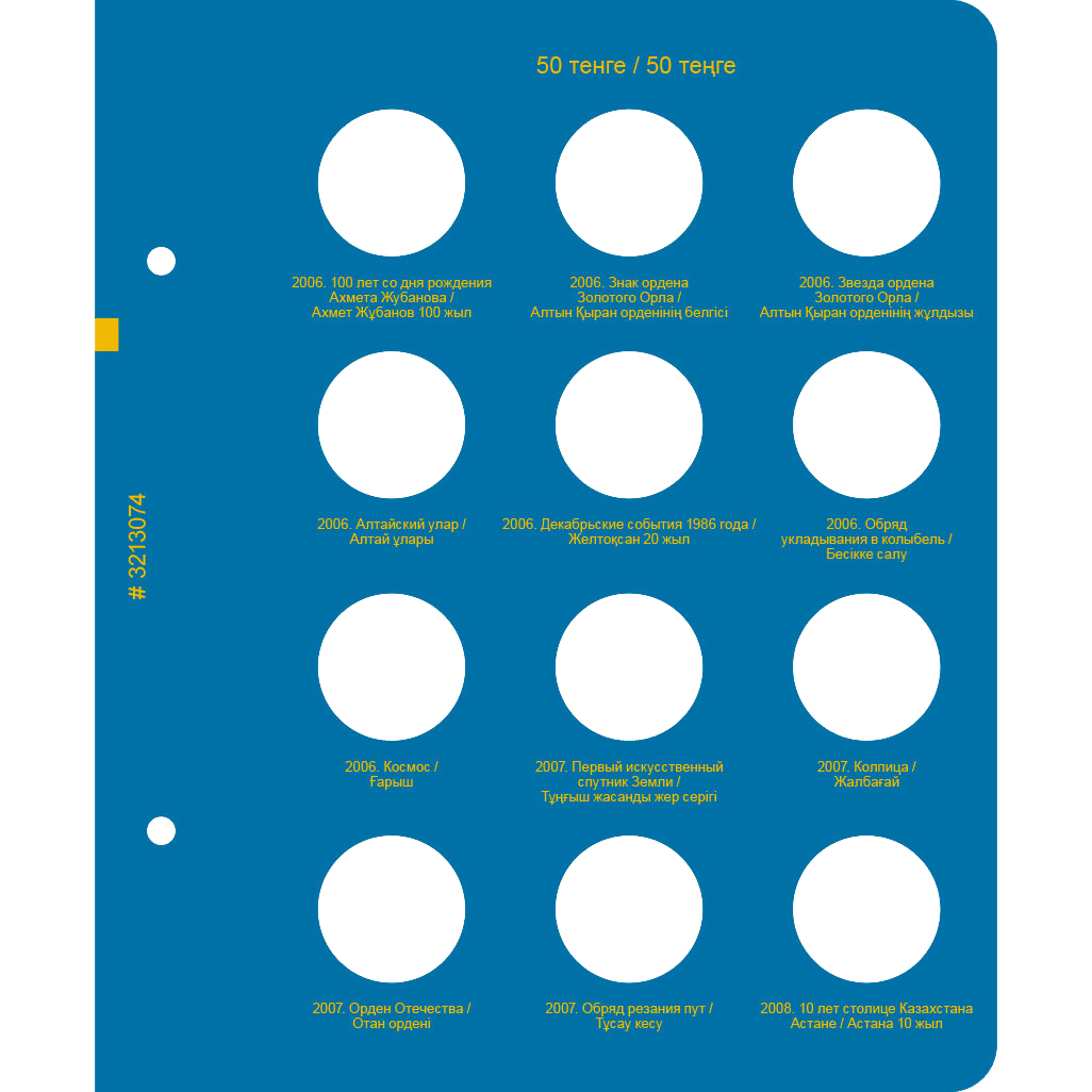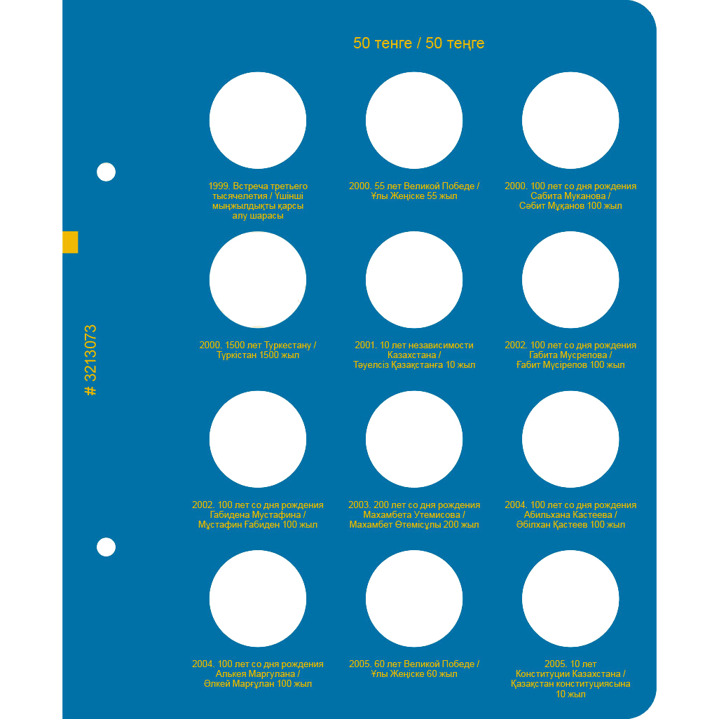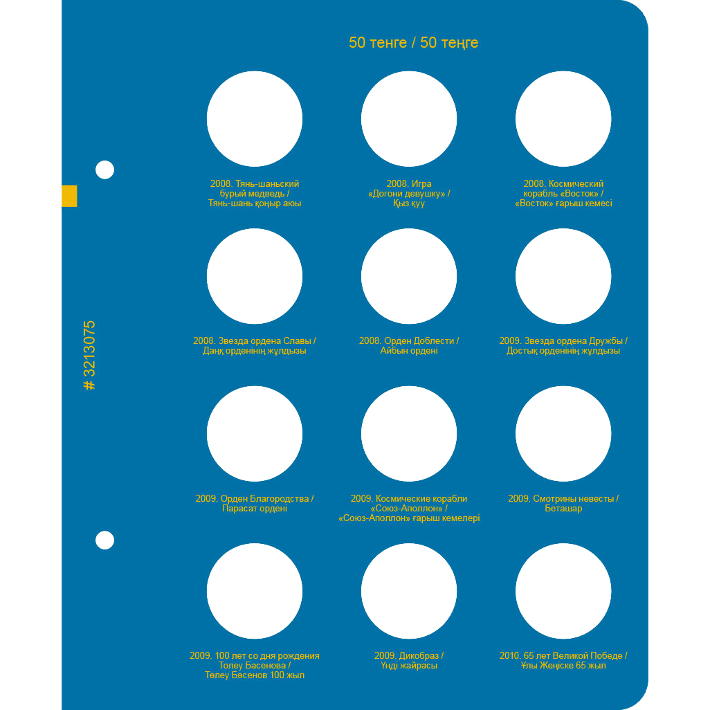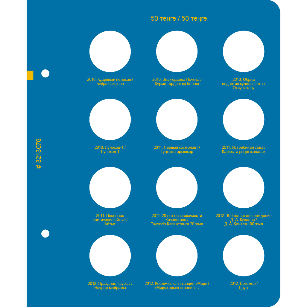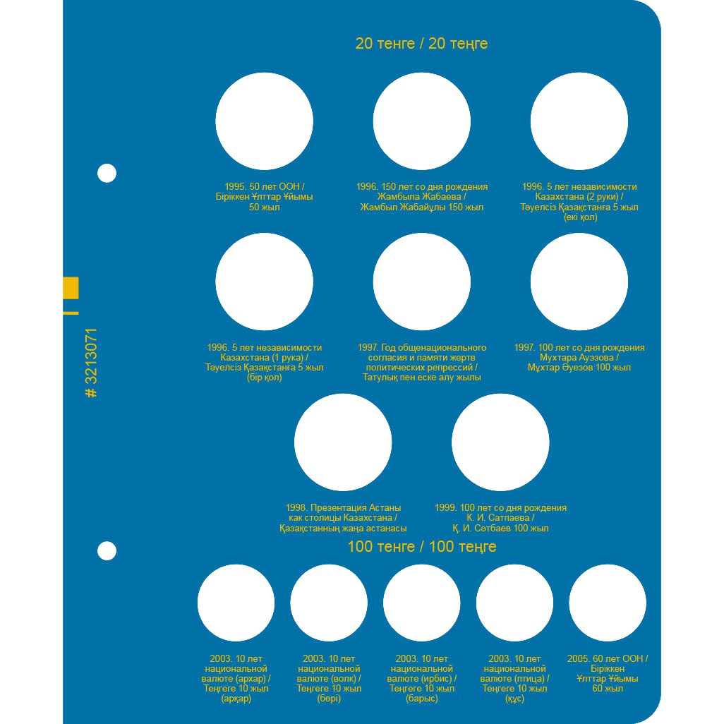 В альбоме подписаны ячейки для памятных монет Казахстана из недрагоценных металлов номиналом 20, 50 и 100 тенге с 1995 по 2014 год.
