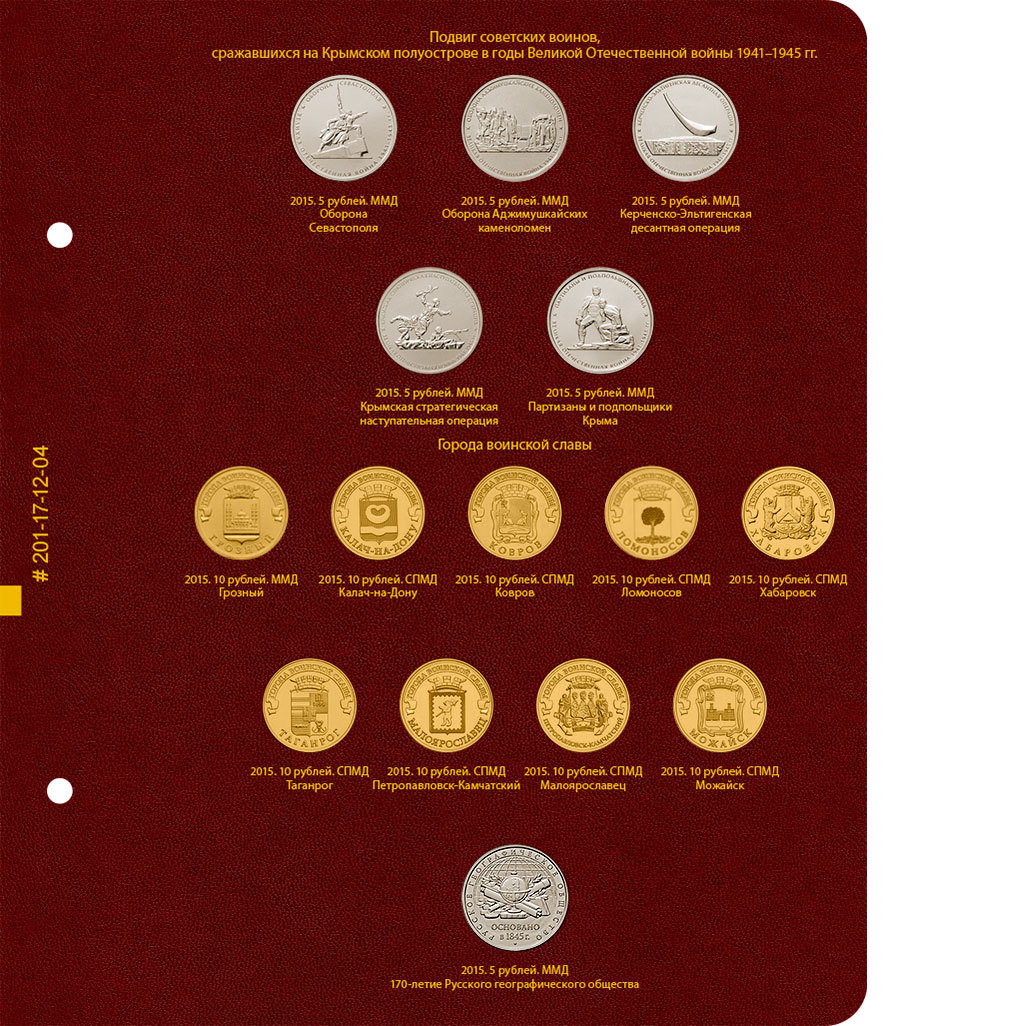 Монеты в альбоме указаны в хронологическом порядке — сначала все 2014 года, затем 2015 и так далее.