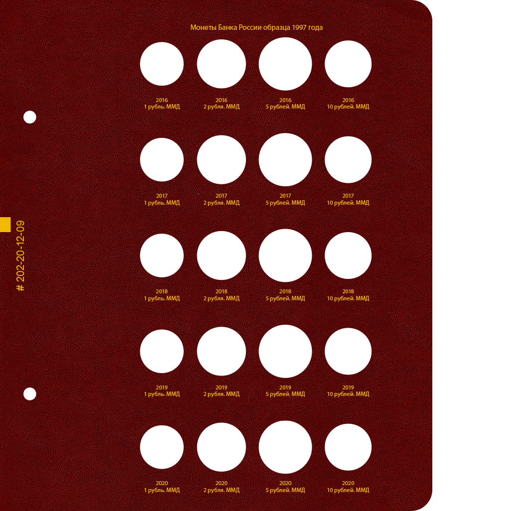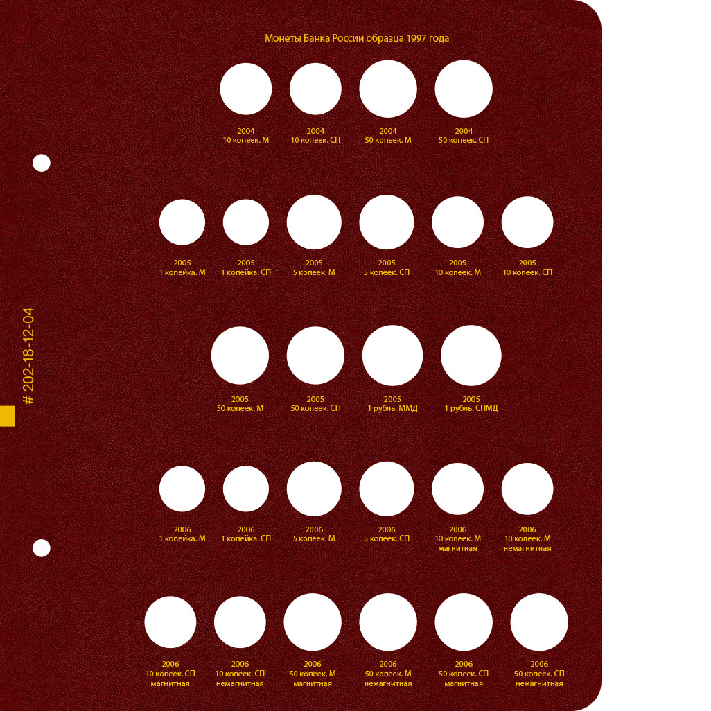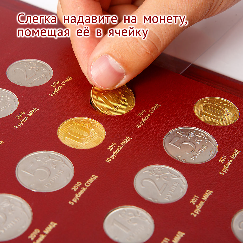В альбоме подписаны ячейки современных монет России регулярного чекана с 1997 года.