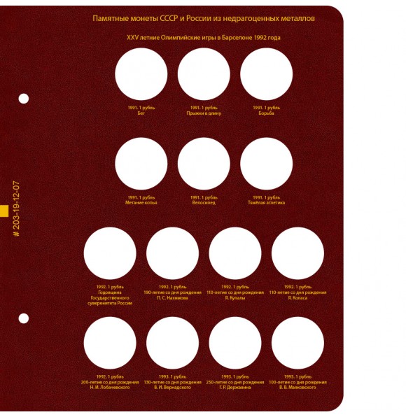 Альбом издательства “Альбо Нумисматико”. В альбоме — картонные листы с ячейками для монет. Каждая ячейка подписана.