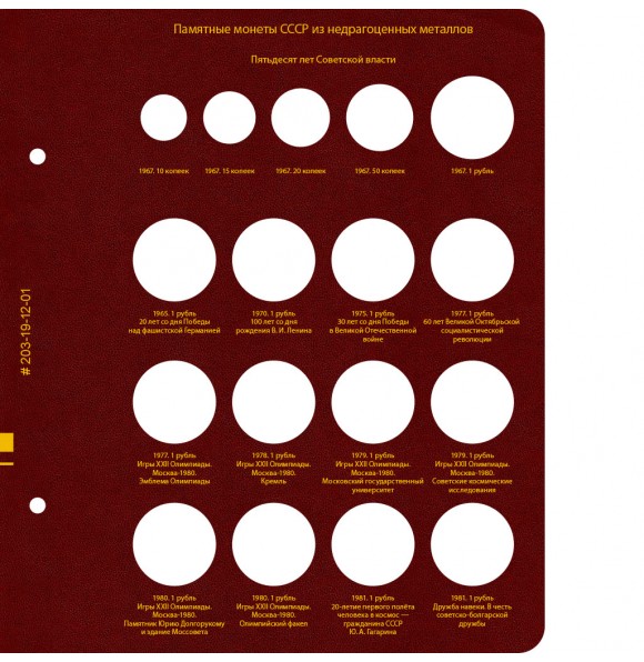 В альбоме учитываются памятные и юбилейные монеты СССР и России с 1965 по 1995 год: