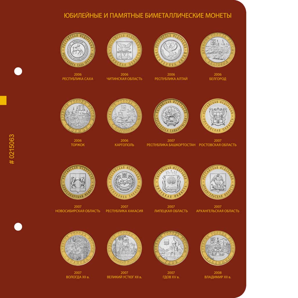 Альбо Нумисматико альбом "Биметаллические юбилейные монеты России 10 рублей" standart Том 1