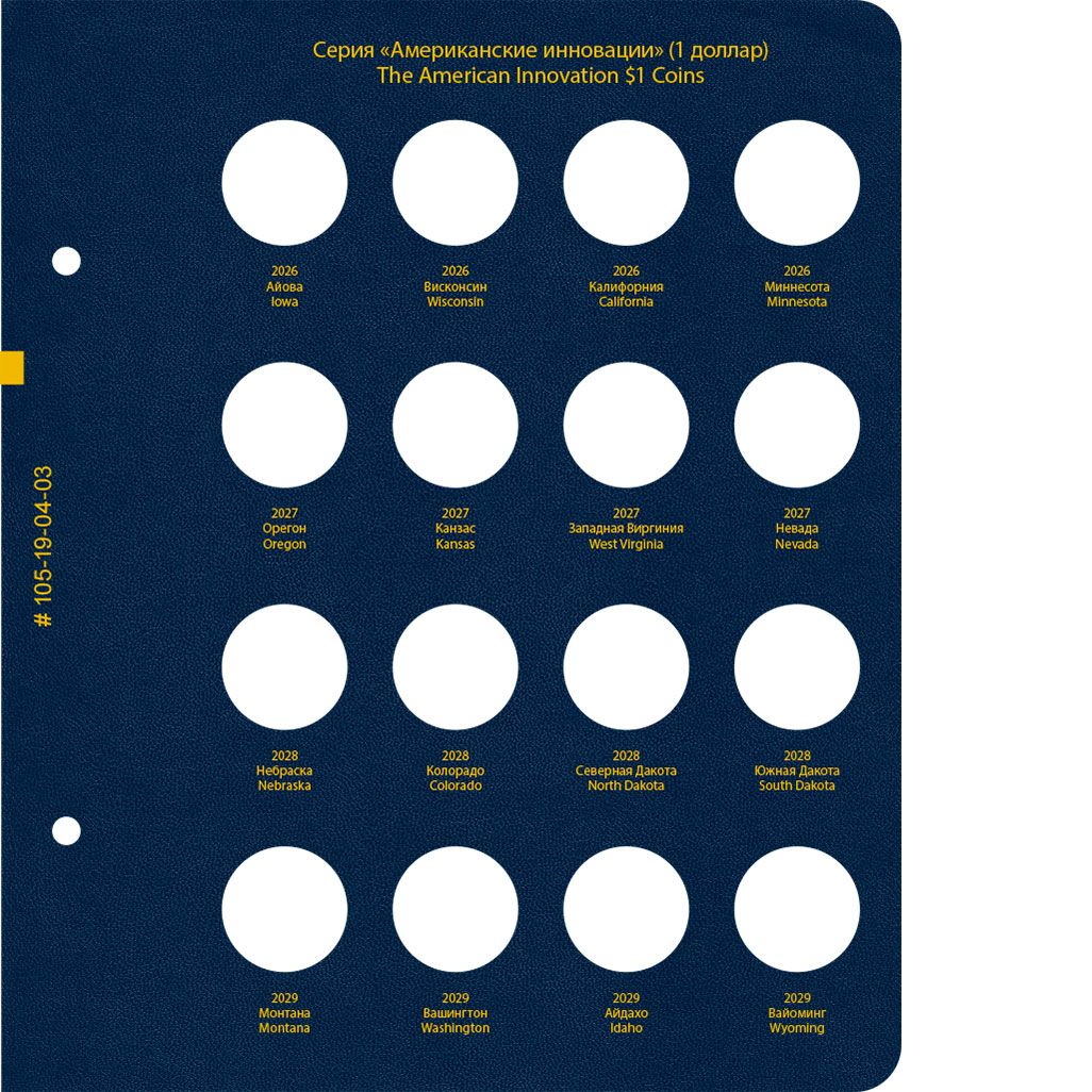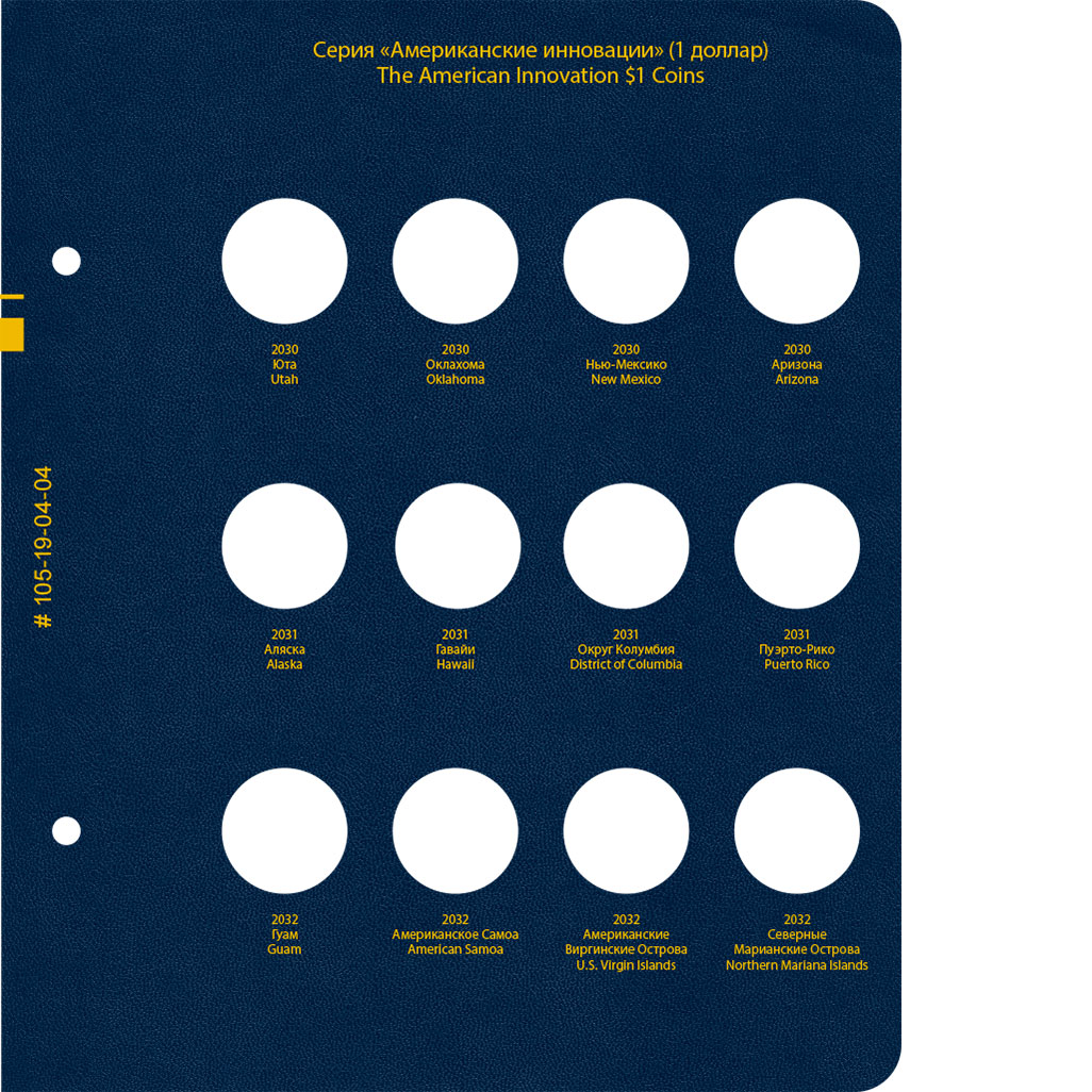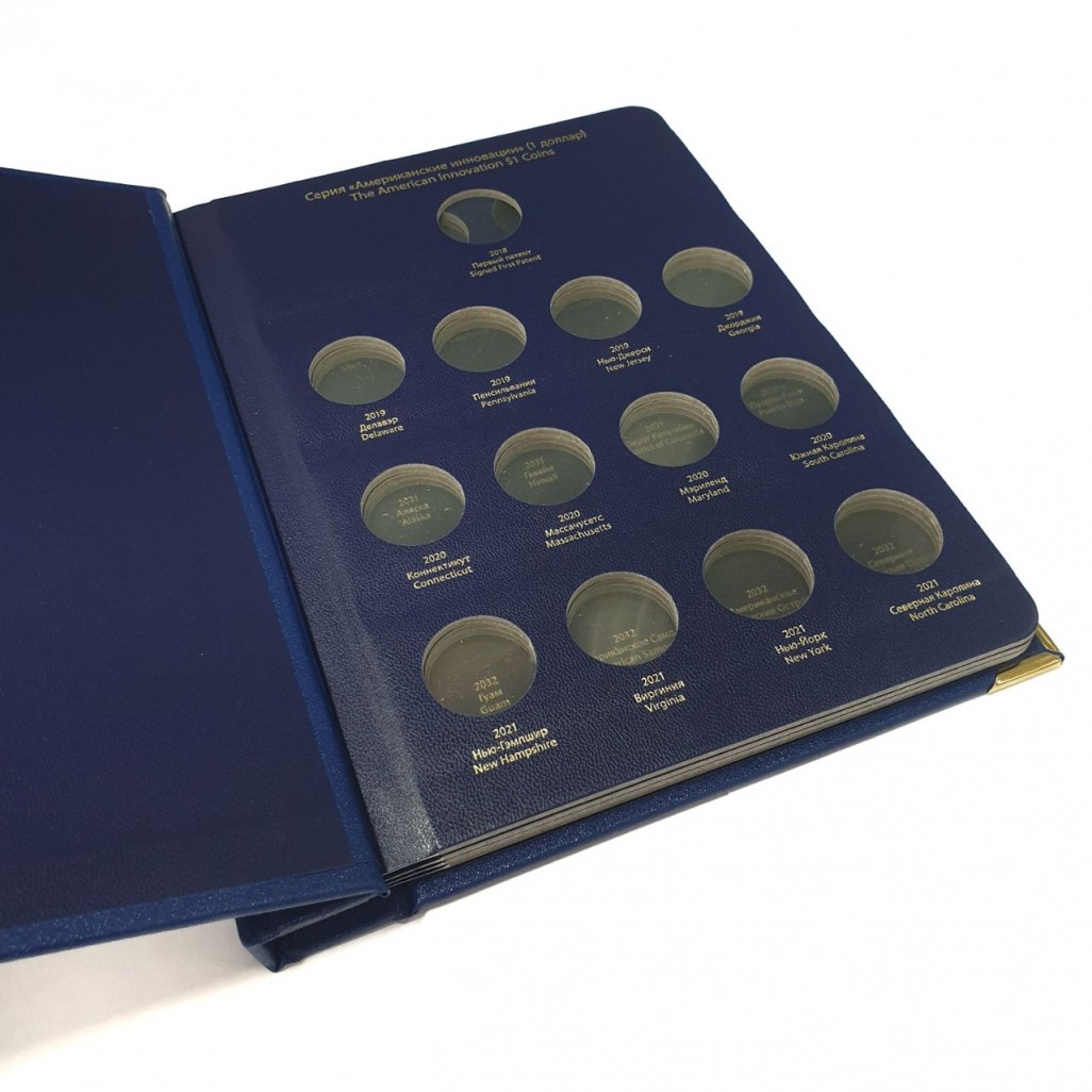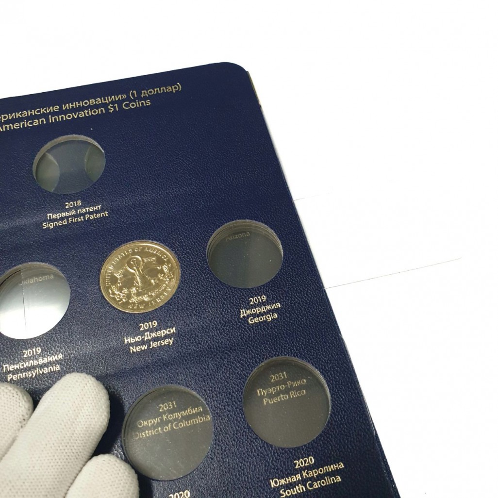 В альбоме подписаны ячейки для монет США серии "Американские инновации" номиналом 1 доллар. Монетные дворы не учитываются.