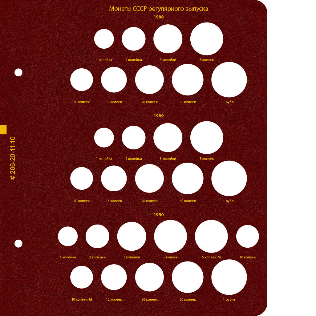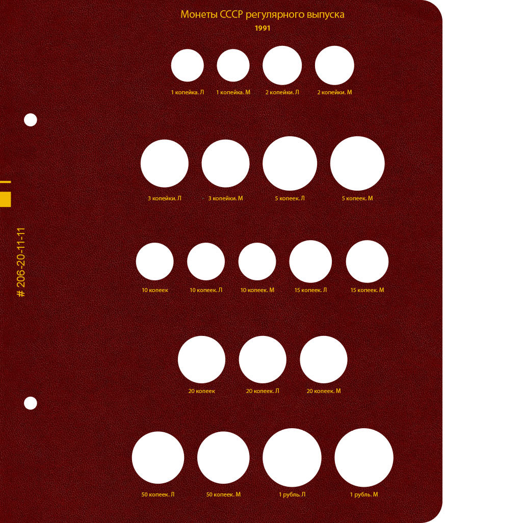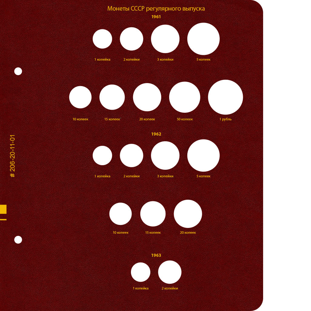 В альбоме подписаны ячейки для монет СССР регулярного чекана с 1961 по 1991 год.