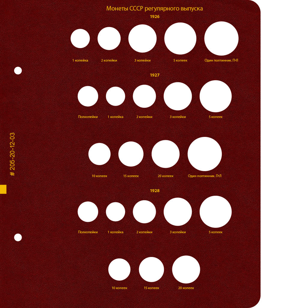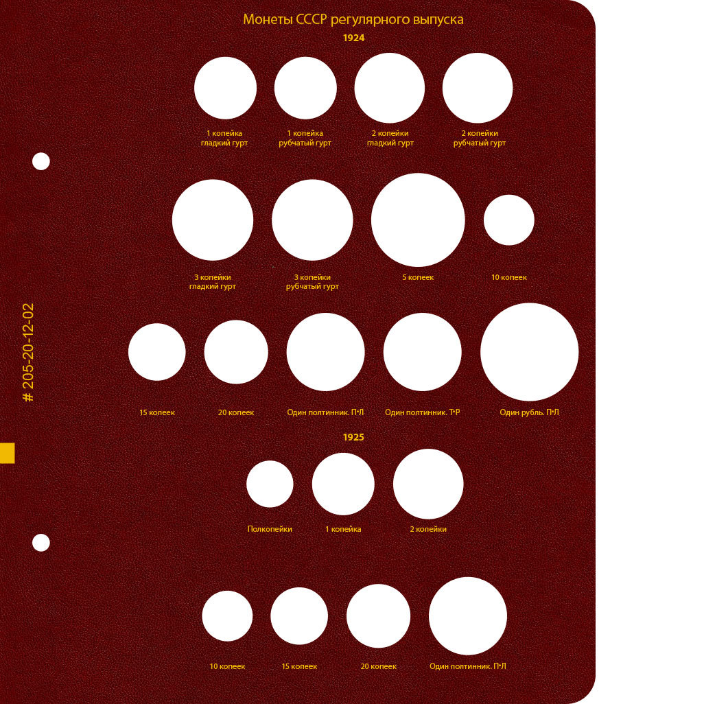 В альбоме подписаны ячейки для монет СССР регулярного чекана с 1921 по 1957 год.