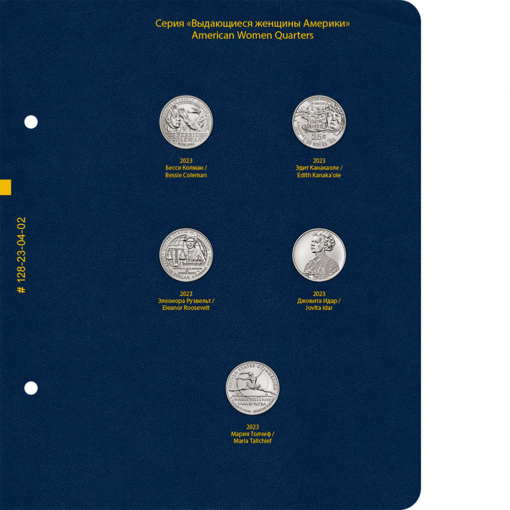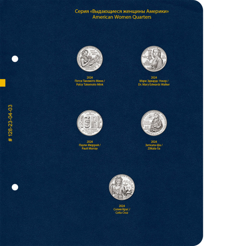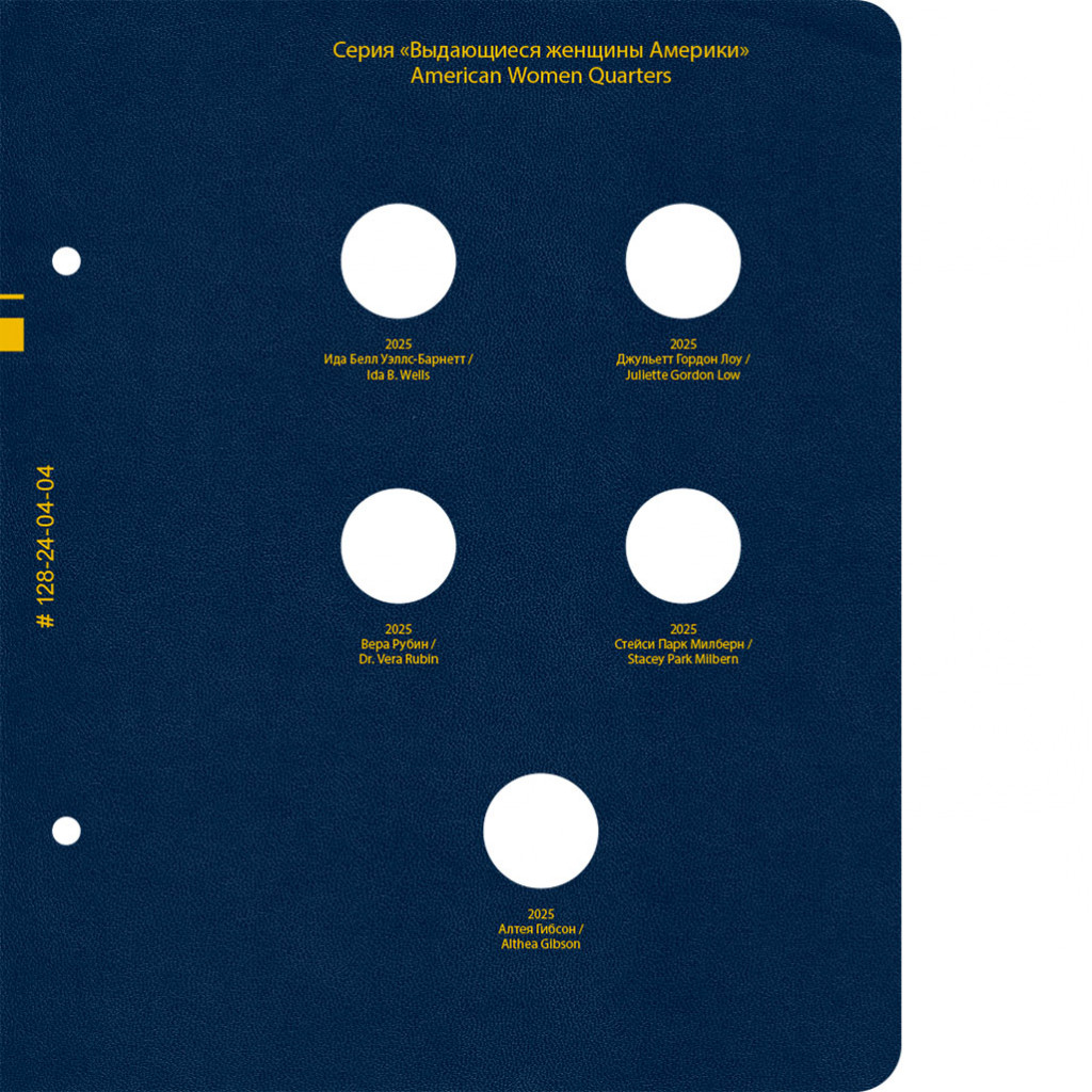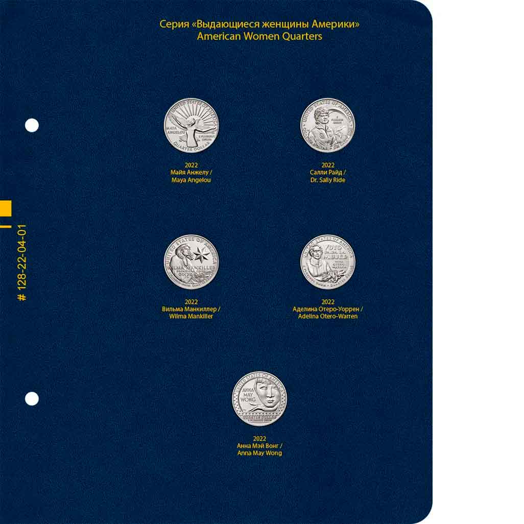В альбоме подписаны ячейки для монет США серии «Американские женщины» номиналом 25 центов. Монетные дворы не учитываются.