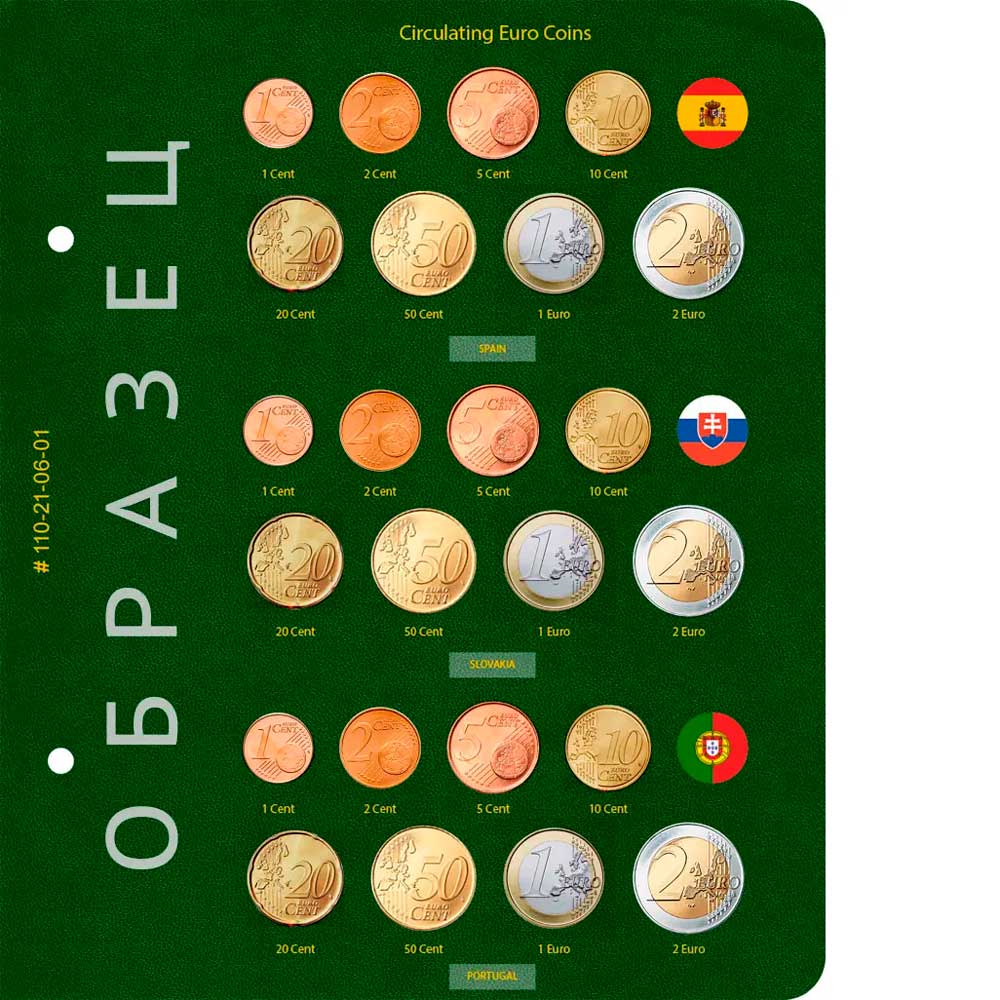 Наклейки предназначены для маркировки универсальных листов для монет евро регулярного чекана.