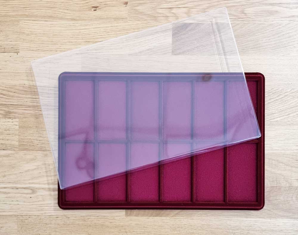 Планшет L на 12 ячеек с поролоновой вставкой (96х49х16) COINBOX (Бордовый)