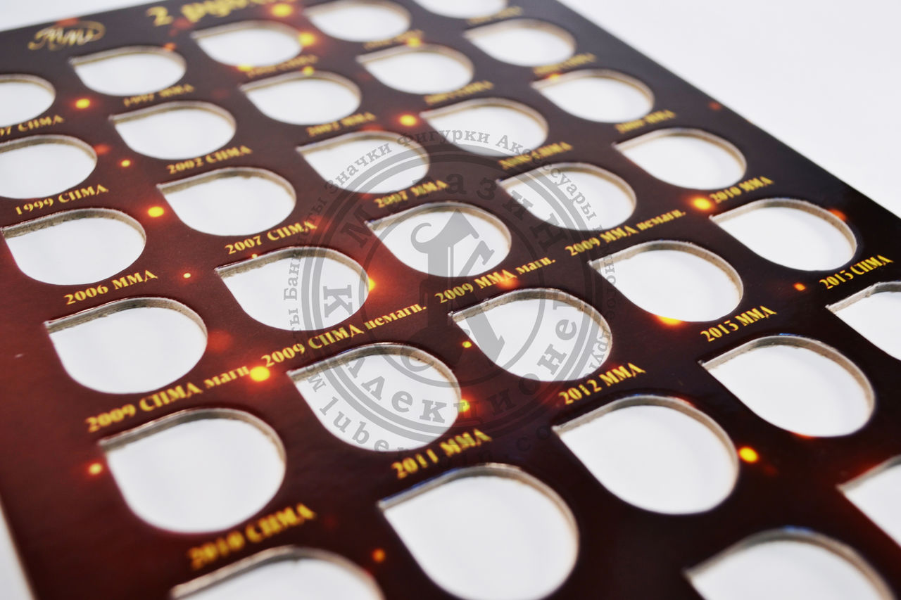 Это картонный альбом-планшет. В нем для каждой монеты есть своя ячейка.