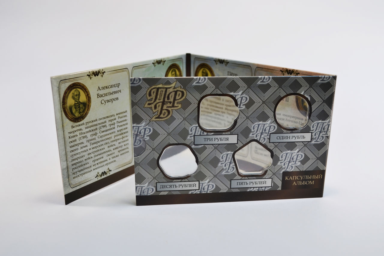 “Капсульный” альбом — условное название. В таком альбоме каждая монета крепко держится в своей ячейке и не крутится. Ячейки закрываются плотным пластиком, но не герметично.