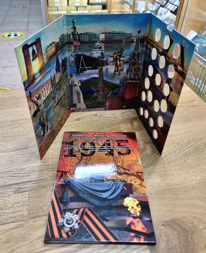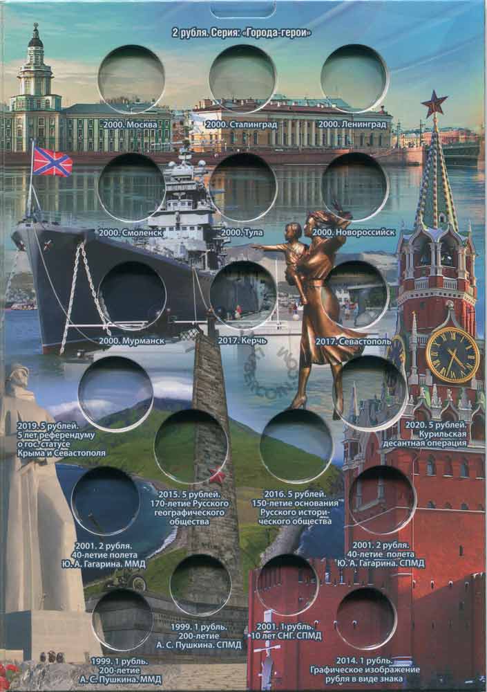 Капсульный альбом "Города-герои и другие монеты России номиналом 1, 2 и 5 рублей"