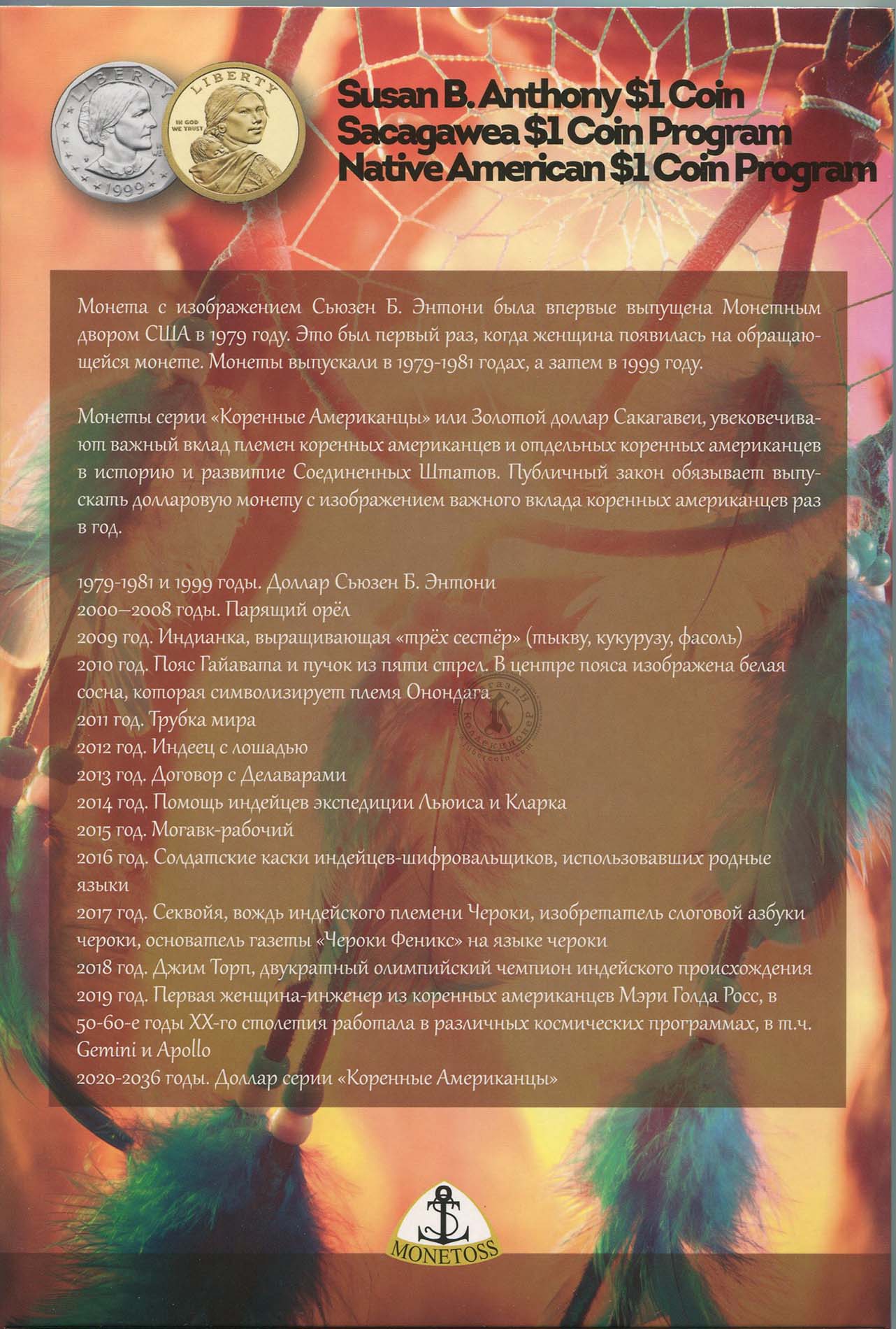 Капсульный альбом "Монеты США серий Сьюзен Энтони, Парящий орел и Коренные американцы"