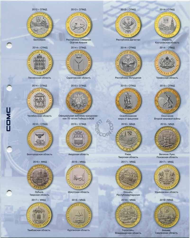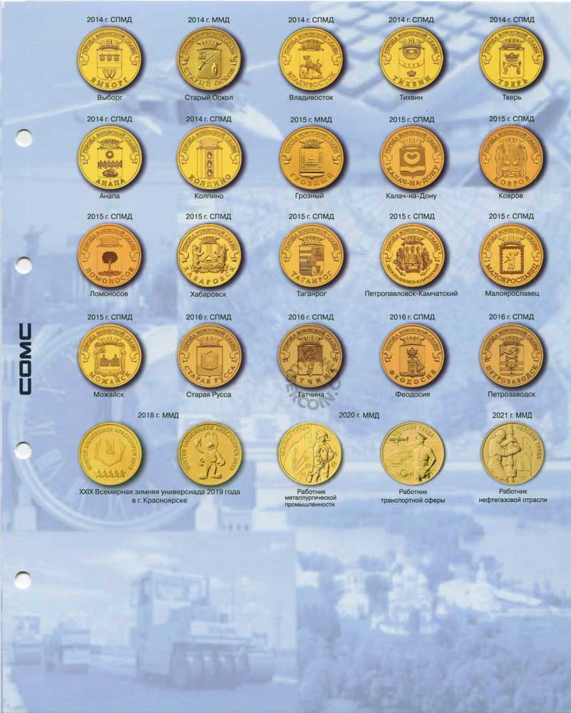 Биметаллические номиналом 10 рублей с разделением на монетные дворы, до 2018 года;