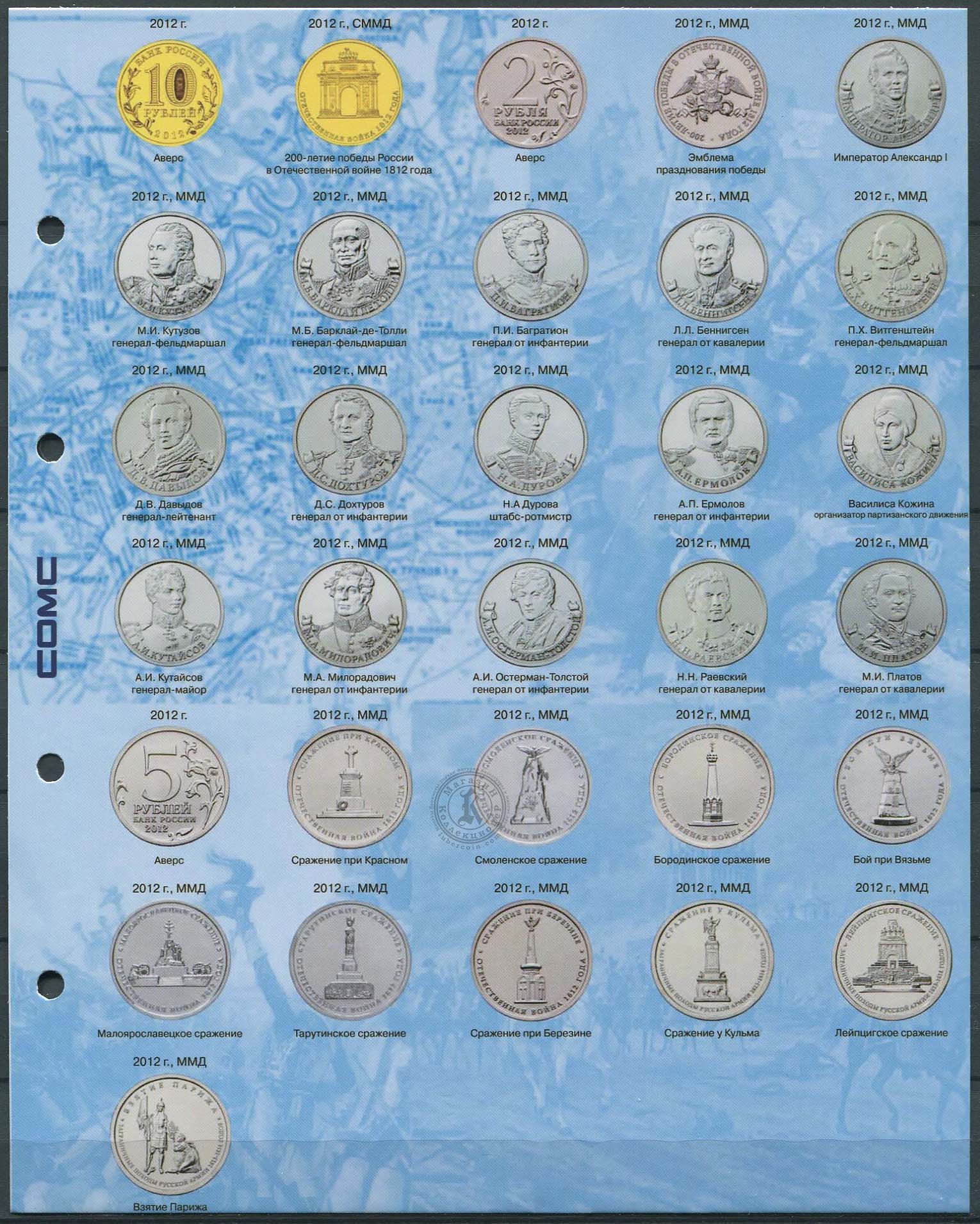 Серия 2012 года "Отечественная война 1812 года" (1 монета номиналом 10 рублей, 10 монет номиналом 5 рублей и 17 монет номиналом 2 рубля).