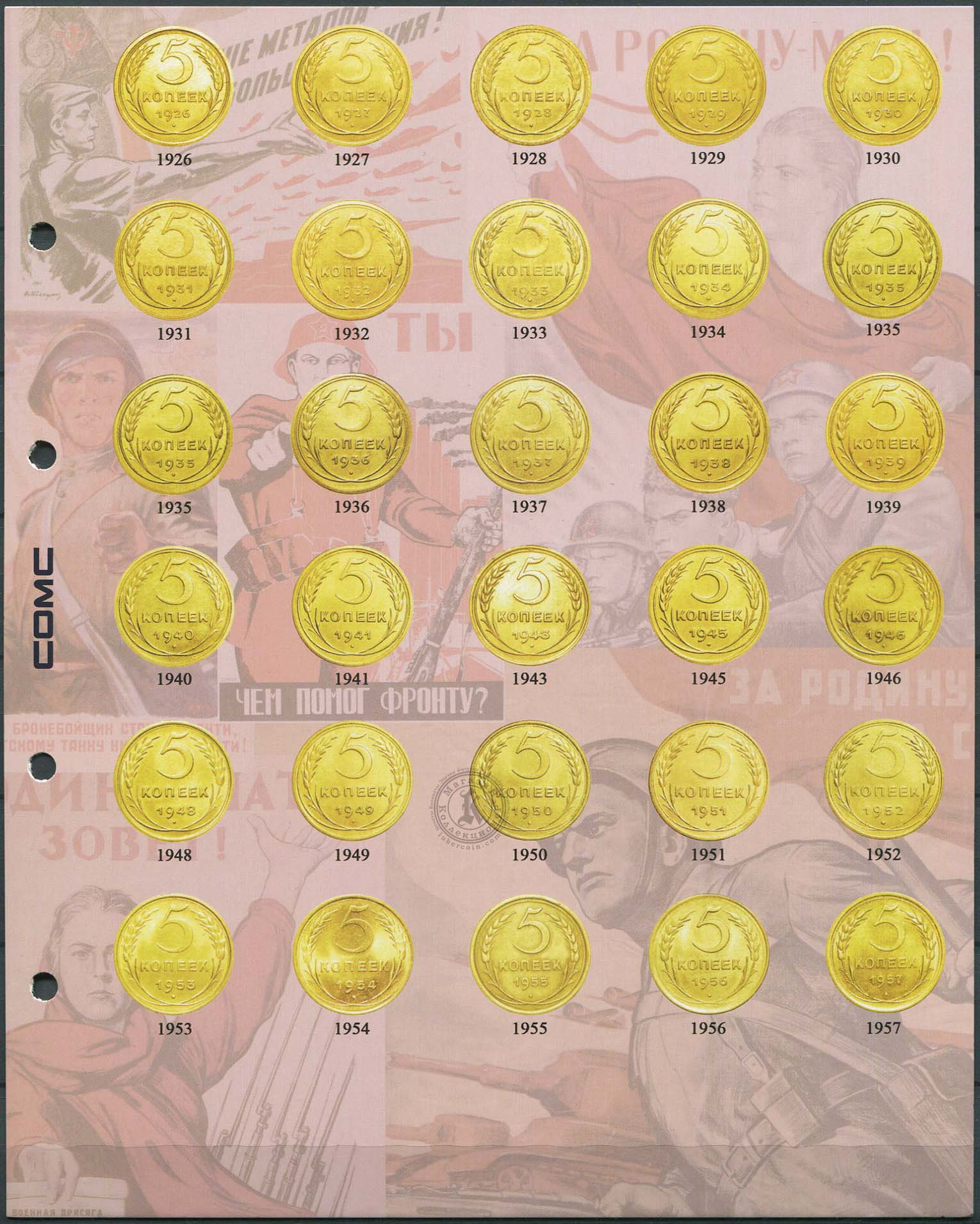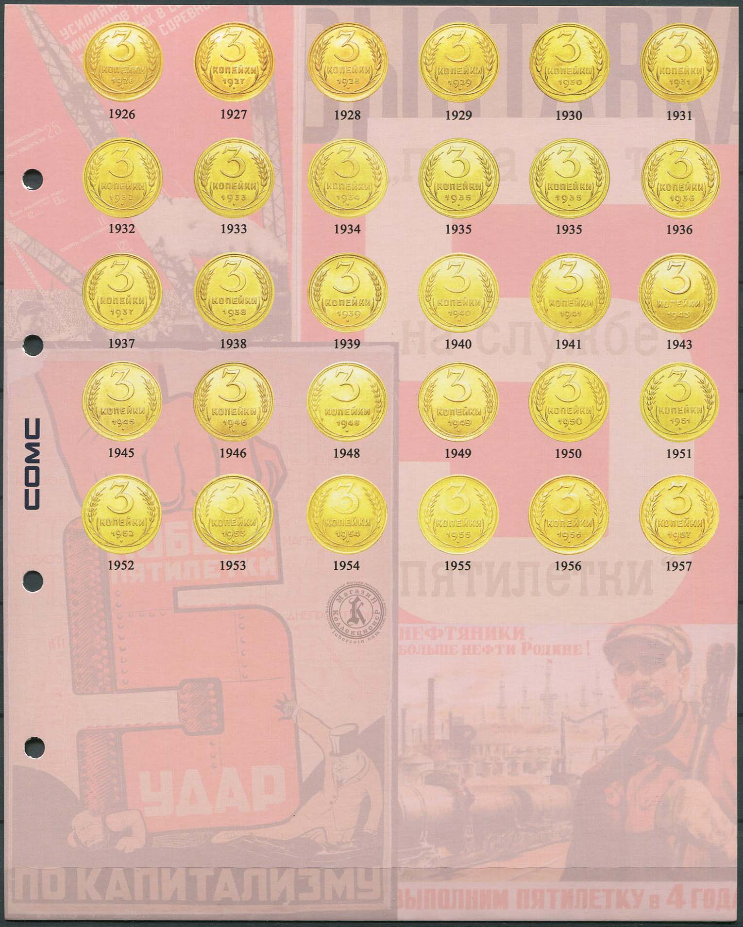 В комплекте 7 разделителей. На разделителях указаны монеты СССР с 1921 по 1957 год, без редких разновидностей и браков.