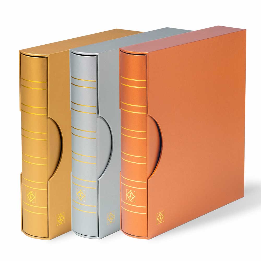 В альбом комфортно поместится 40 листов с монетами в холдерах, 60 листов с банкнотами или марками, 4-5 листов со значками.
