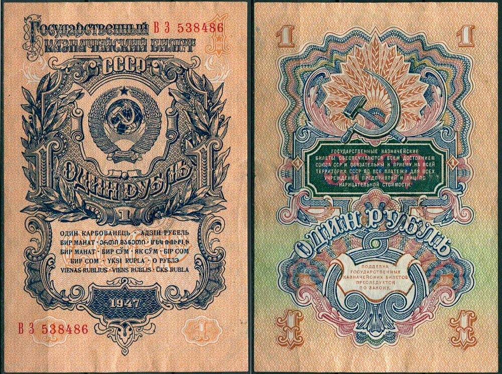 1 рубль 1947 ВЗ 538486 (16 лент)