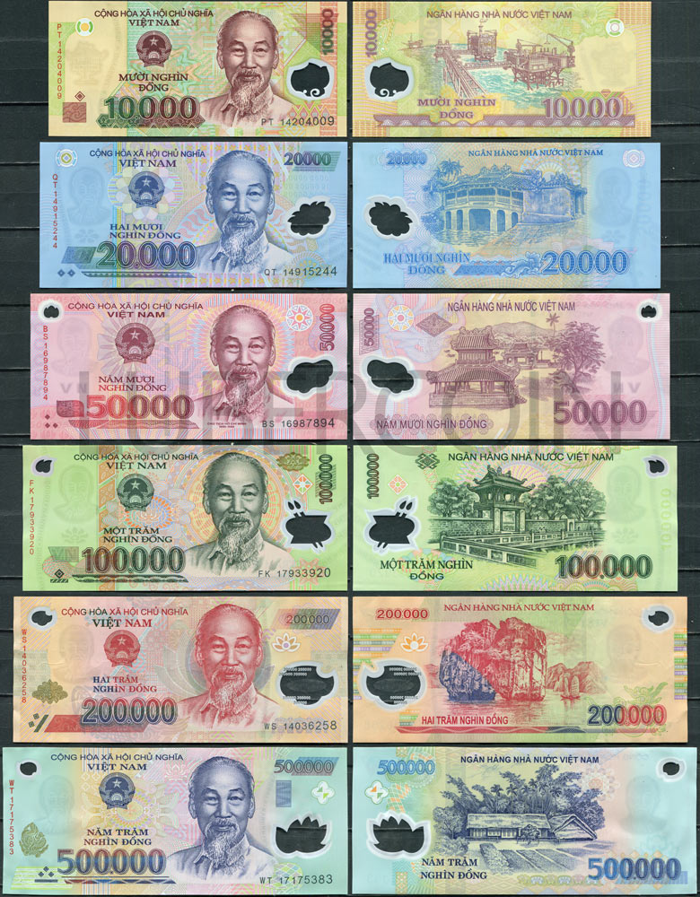 Вьетнам набор 10000, 20000, 50000, 100000, 200000, 500000 донг ND (2003 - ...) (6 банкнот)