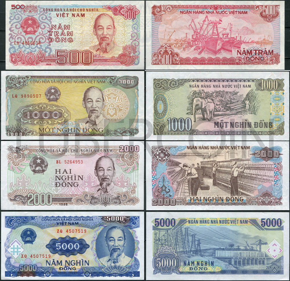 Вьетнам набор 500, 1000, 2000, 5000 донг 1988-1991 (4 банкноты) UNC