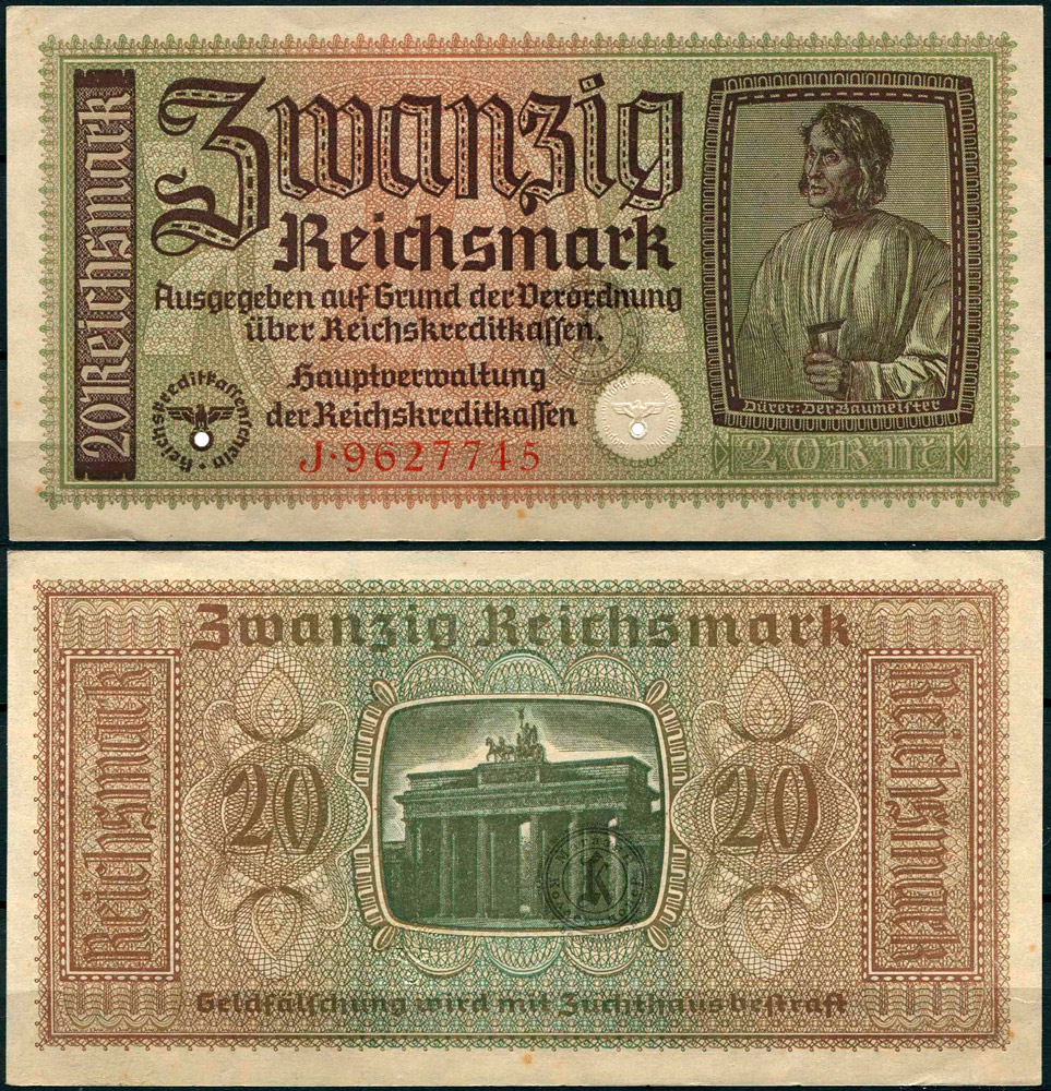 Германия (Третий Рейх) 20 марок ND (1940-1945) для оккупированных территорий J 9627745