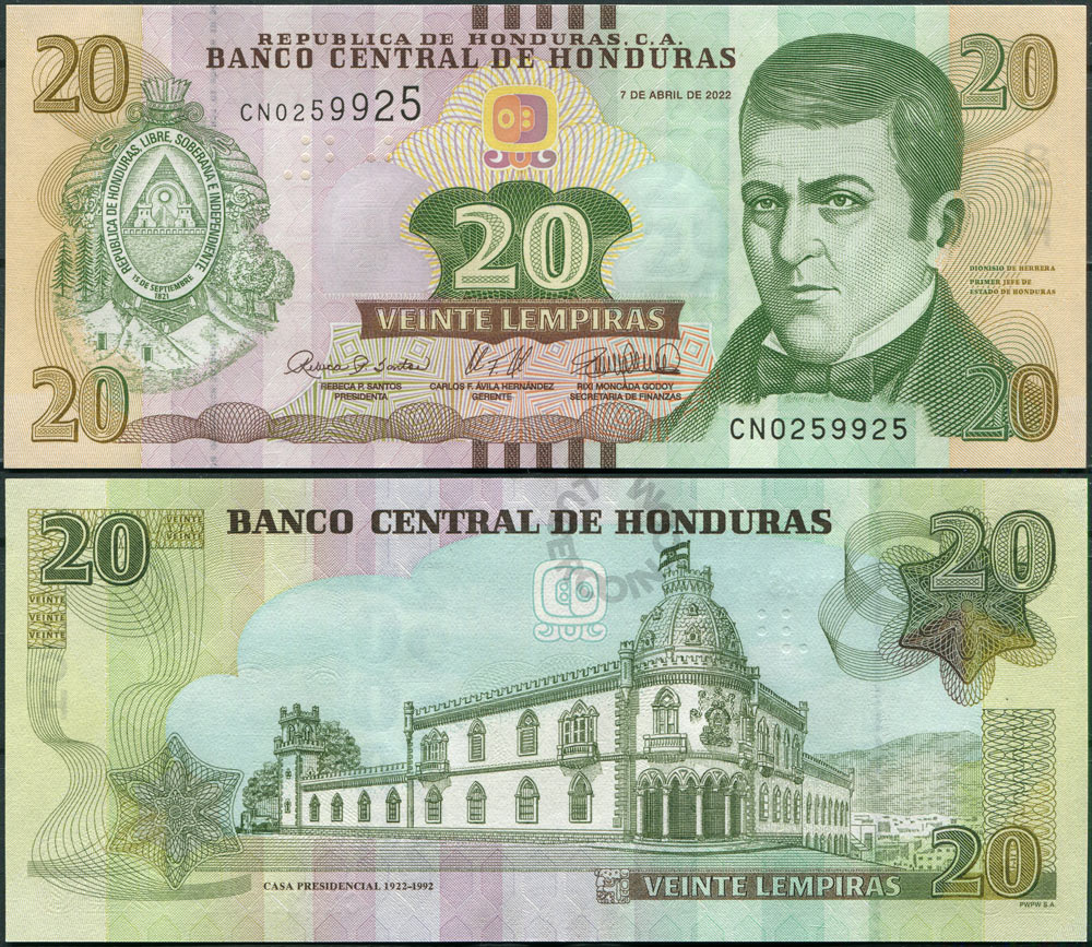 Гондурас 20 лемпир 2022 UNC (#100e)
