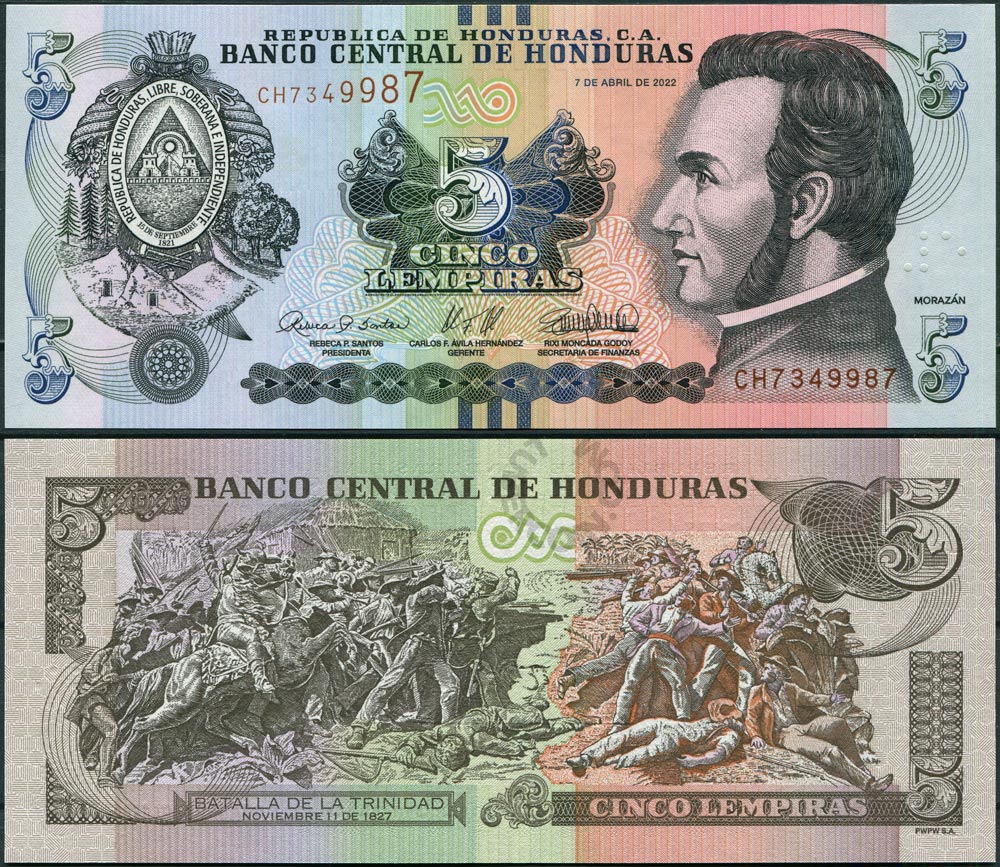 Гондурас 5 лемпир 2022 UNC (#98e)