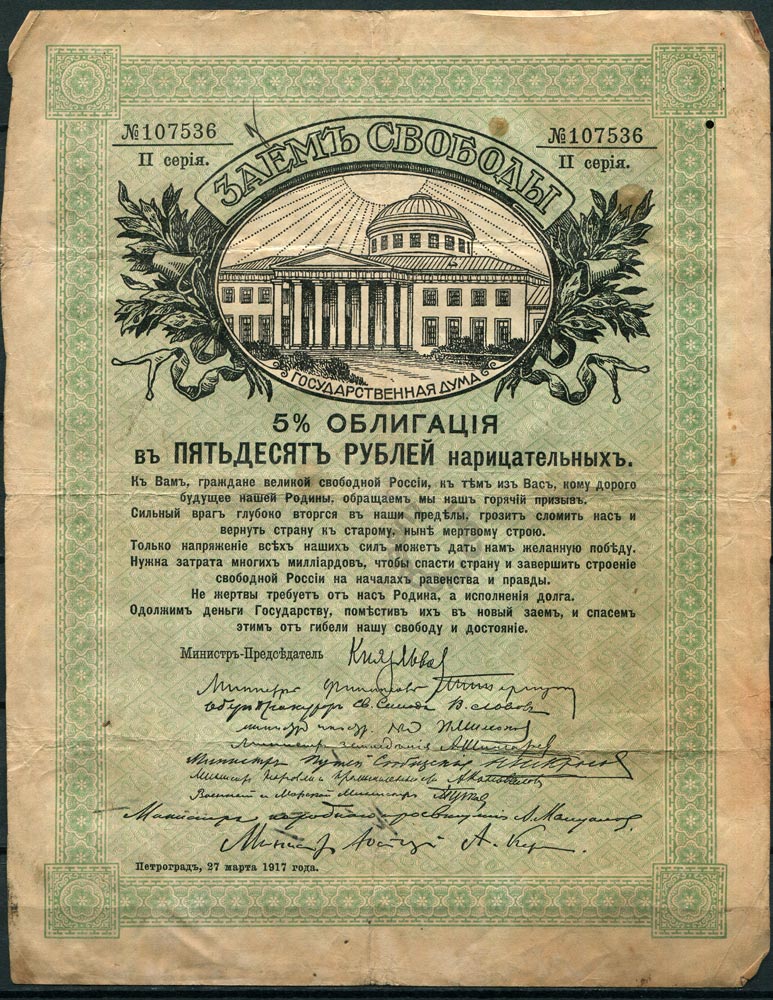 Заём свободы 1917 50 рублей II серия № 107536
