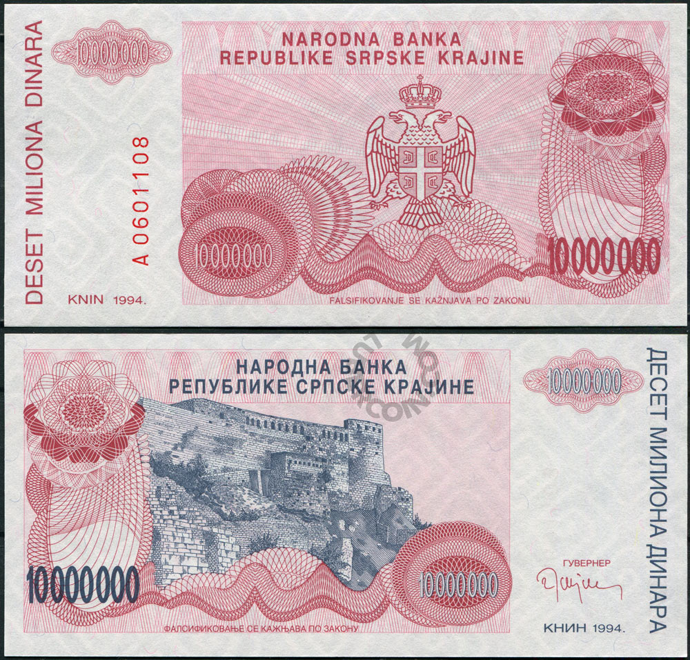 Сербская Краина 10000000 динар 1994 A (Крепость) UNC