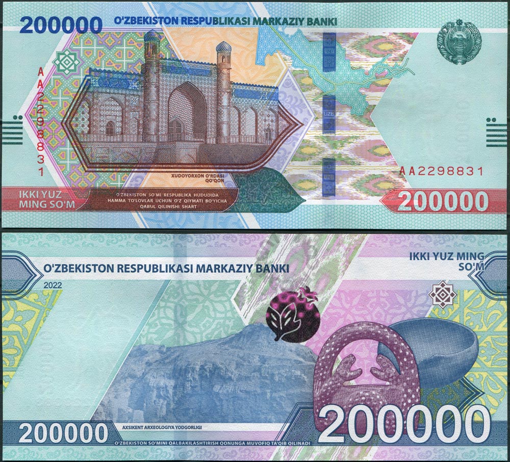 Узбекистан 1000 сум 2001 («1» без UV) UNC