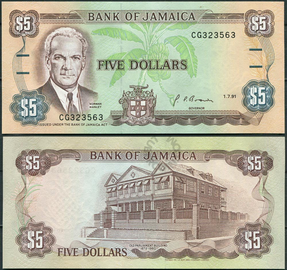 Ямайка 5 долларов 1991 UNC