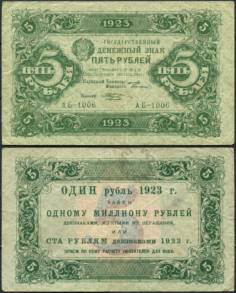 5 рублей 1923 1-й выпуск АБ - 1006 М. Козлов (00046240)