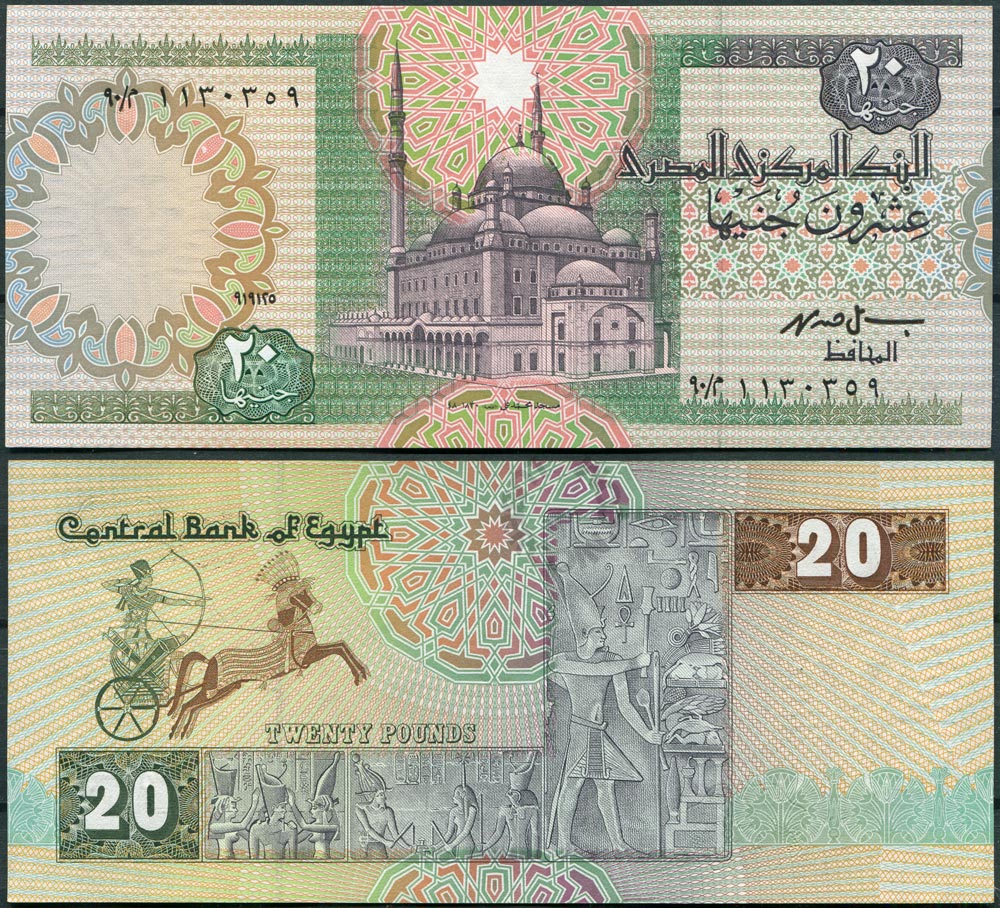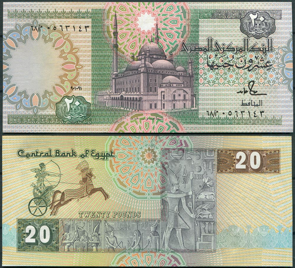 Египет 20 фунтов 1991 (٩٠١٠٩١ / 01.09.1991) UNC (Замяты углы)