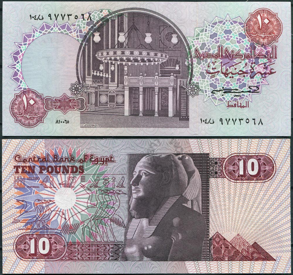 Египет 10 фунтов 1985 (٨١٠٠٦٥ / 10.06.1985) UNC (Замяты углы)
