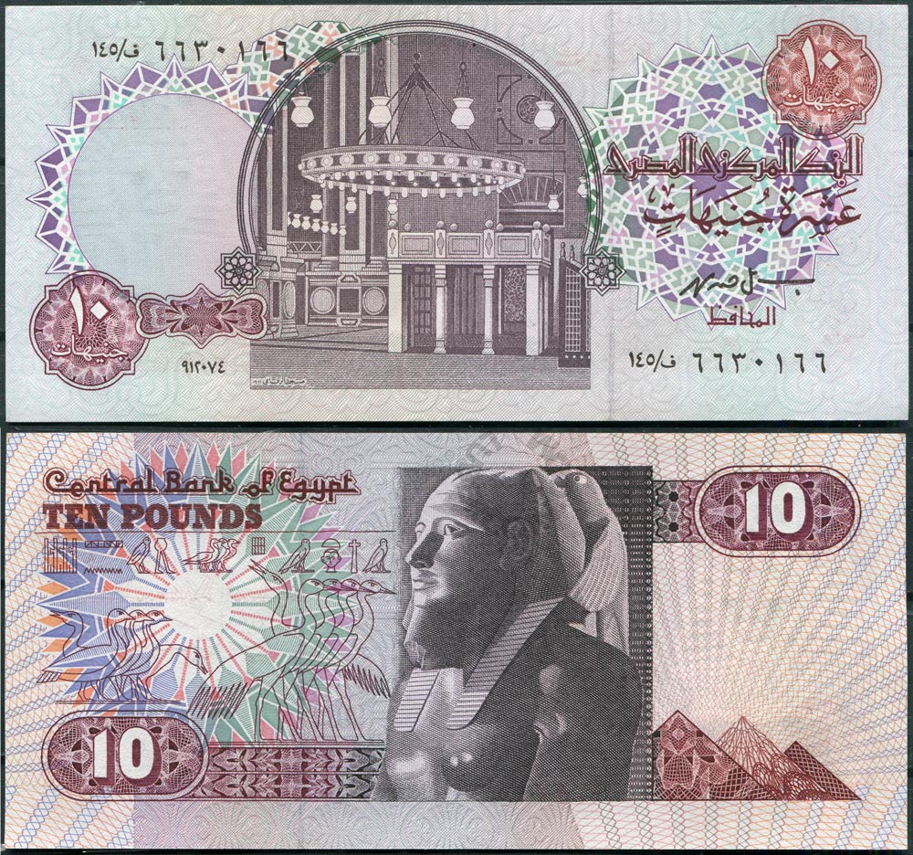 Египет 10 фунтов 1994 (٩١٢٠٧٤ / 12.07.1994) UNC (Замяты углы)