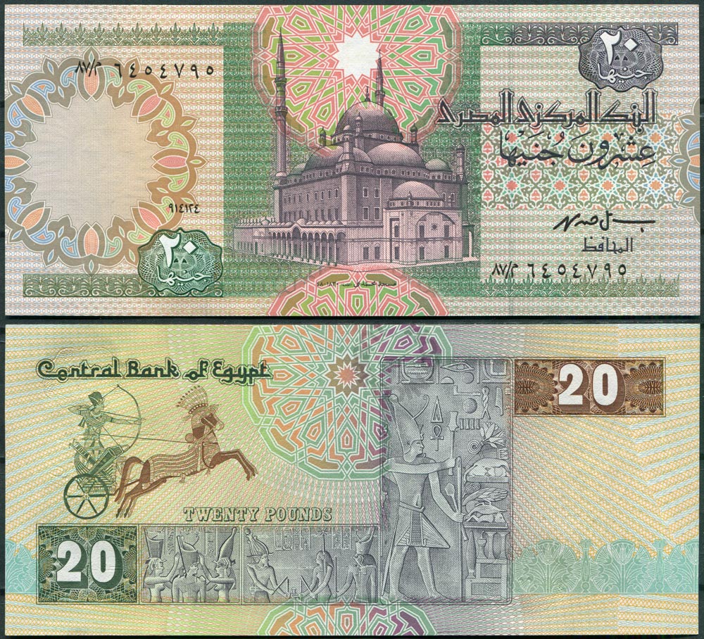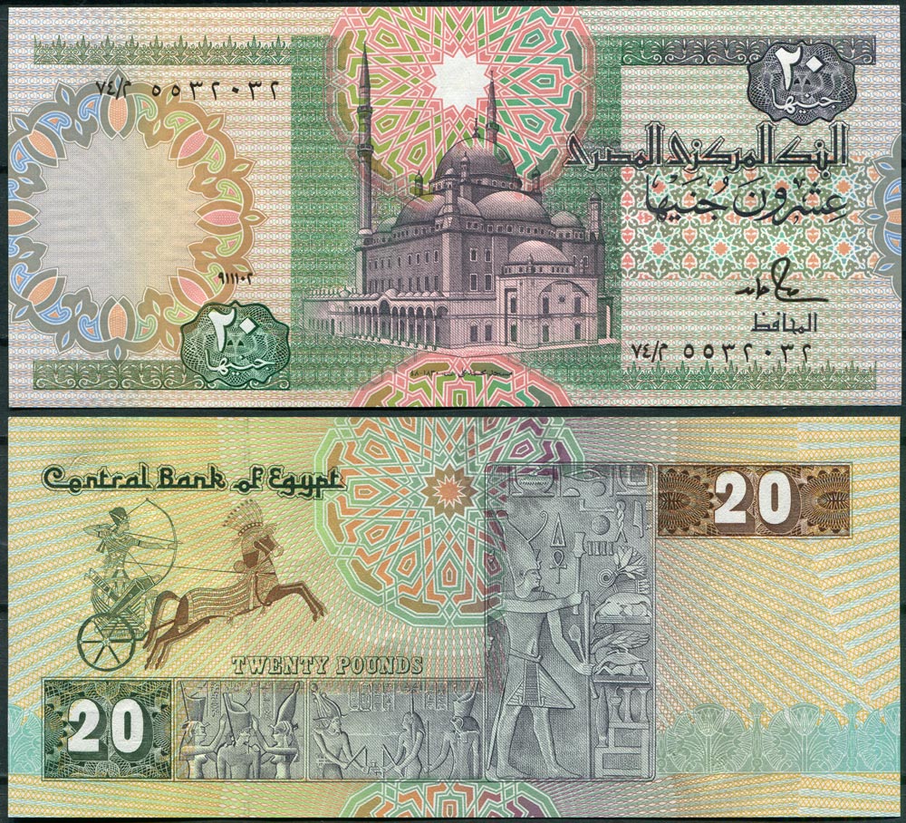 Египет 20 фунтов 1992 (٩١١١٠٤ / 10.10.1992) UNC (Замяты углы)