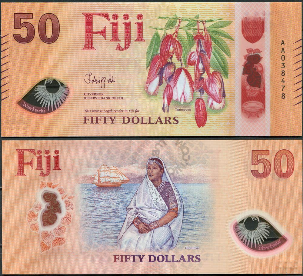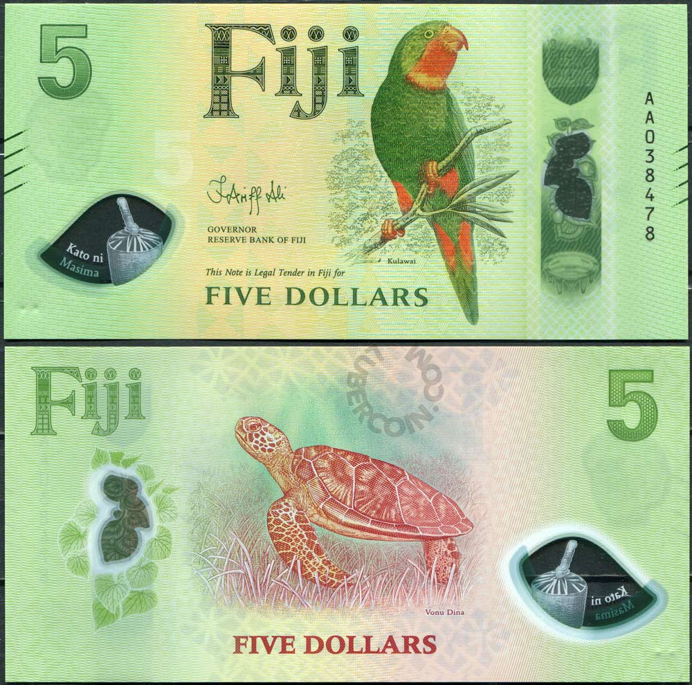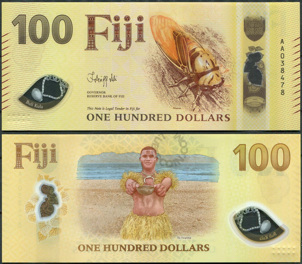 Фиджи набор банкнот 5, 10, 20, 50, 100 долларов ND (2026) AA038.. Одинаковый номер (5 банкнот) UNC