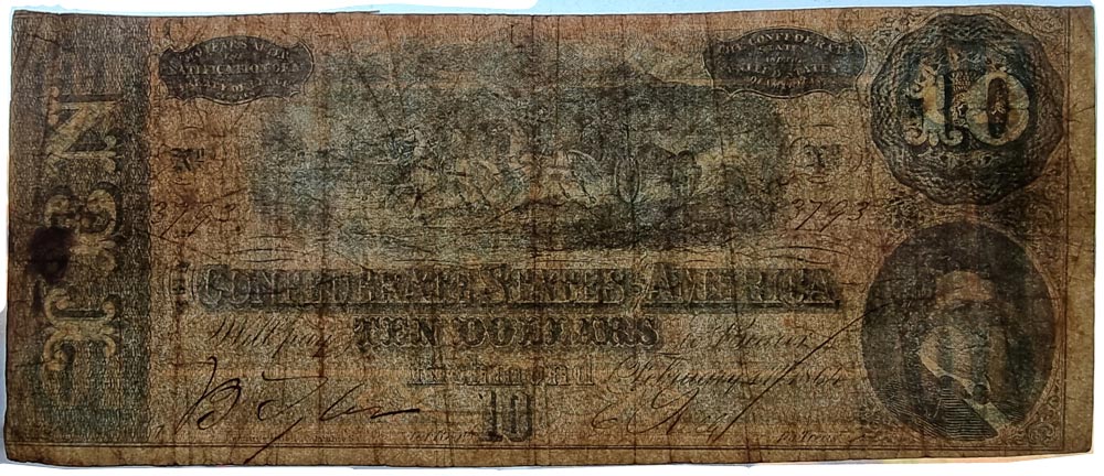 Конфедеративные Штаты Америки (КША) 10 долларов 1864 №3793 (00041339)