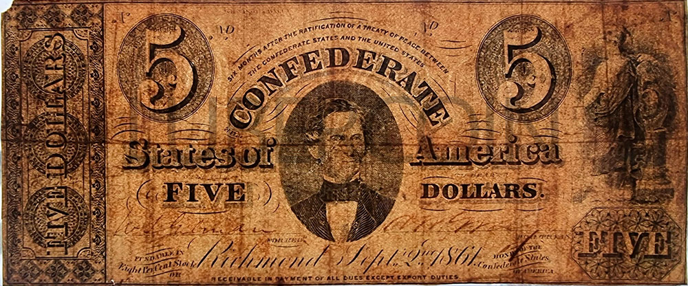 Конфедеративные Штаты Америки (КША) 5 долларов 1861 #17a (00047294)