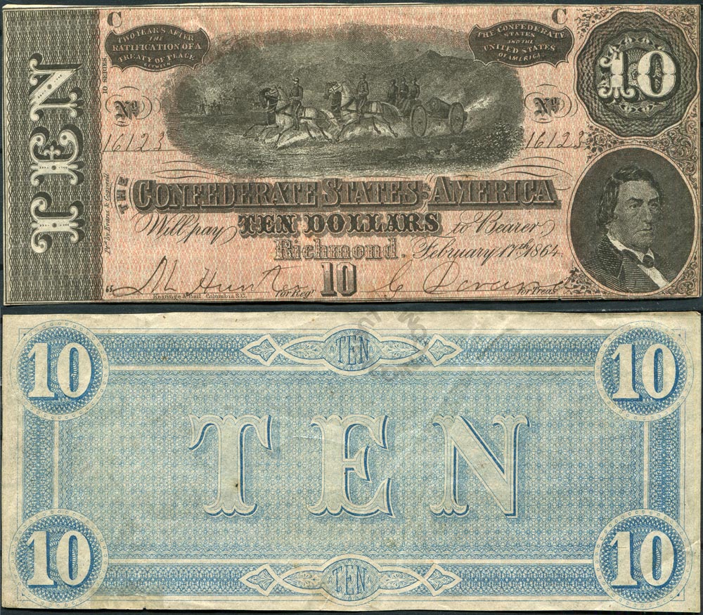 Конфедеративные Штаты Америки (КША) 10 долларов 1864 №16123 (00047513)