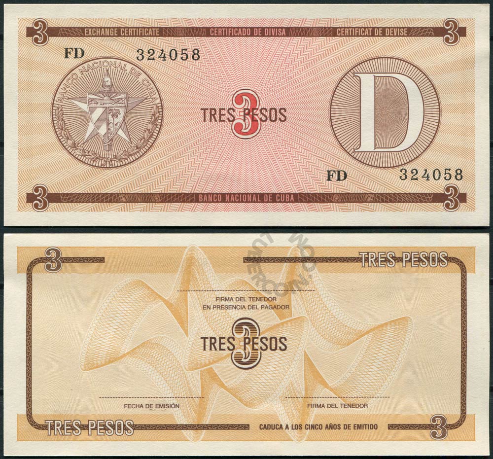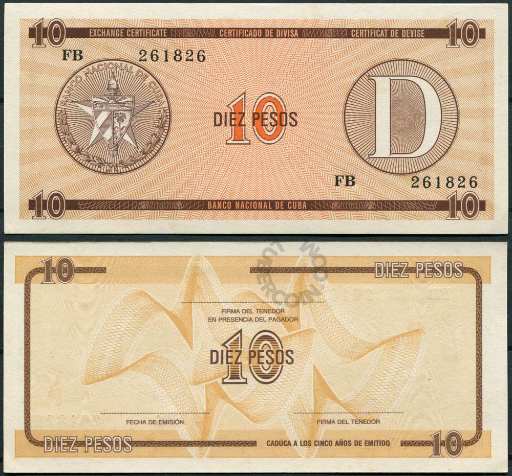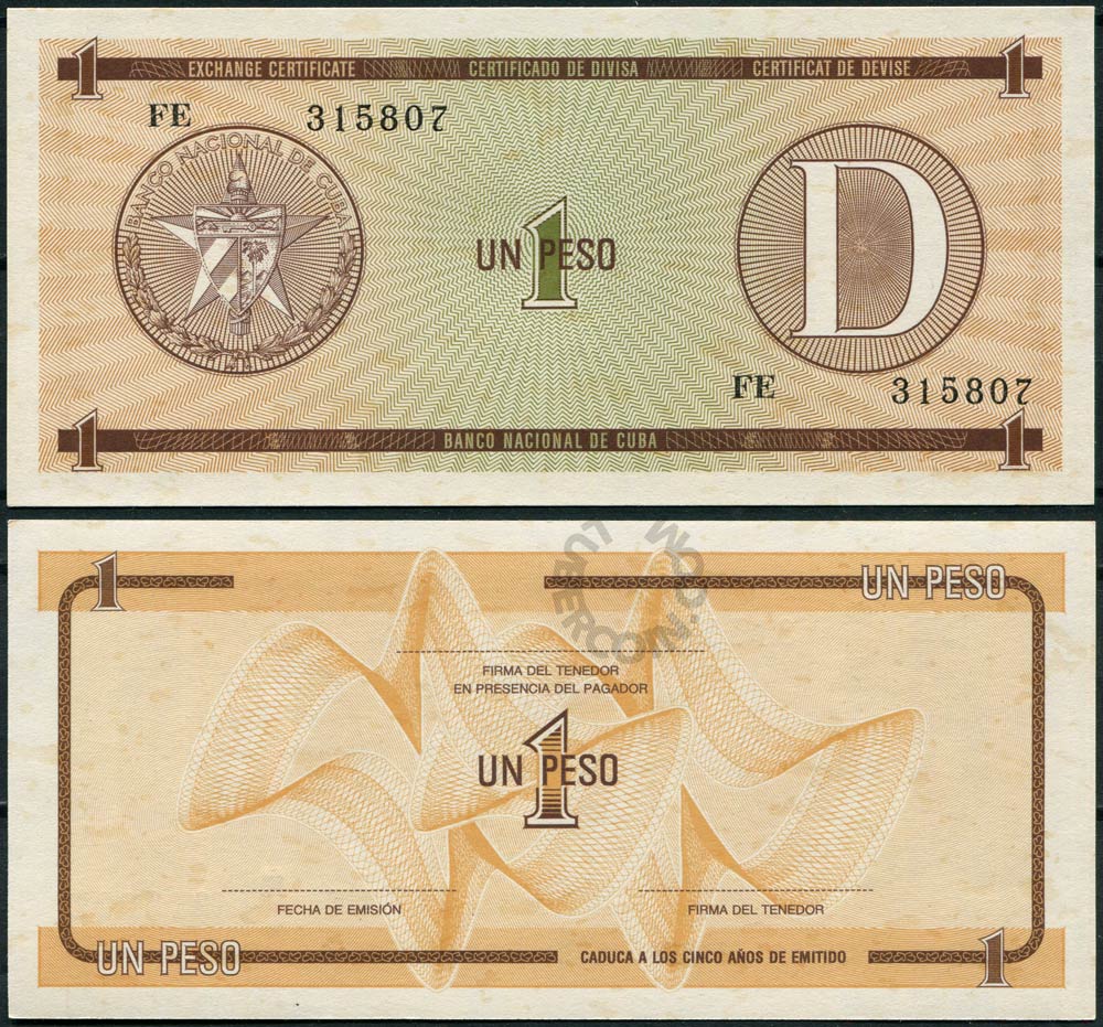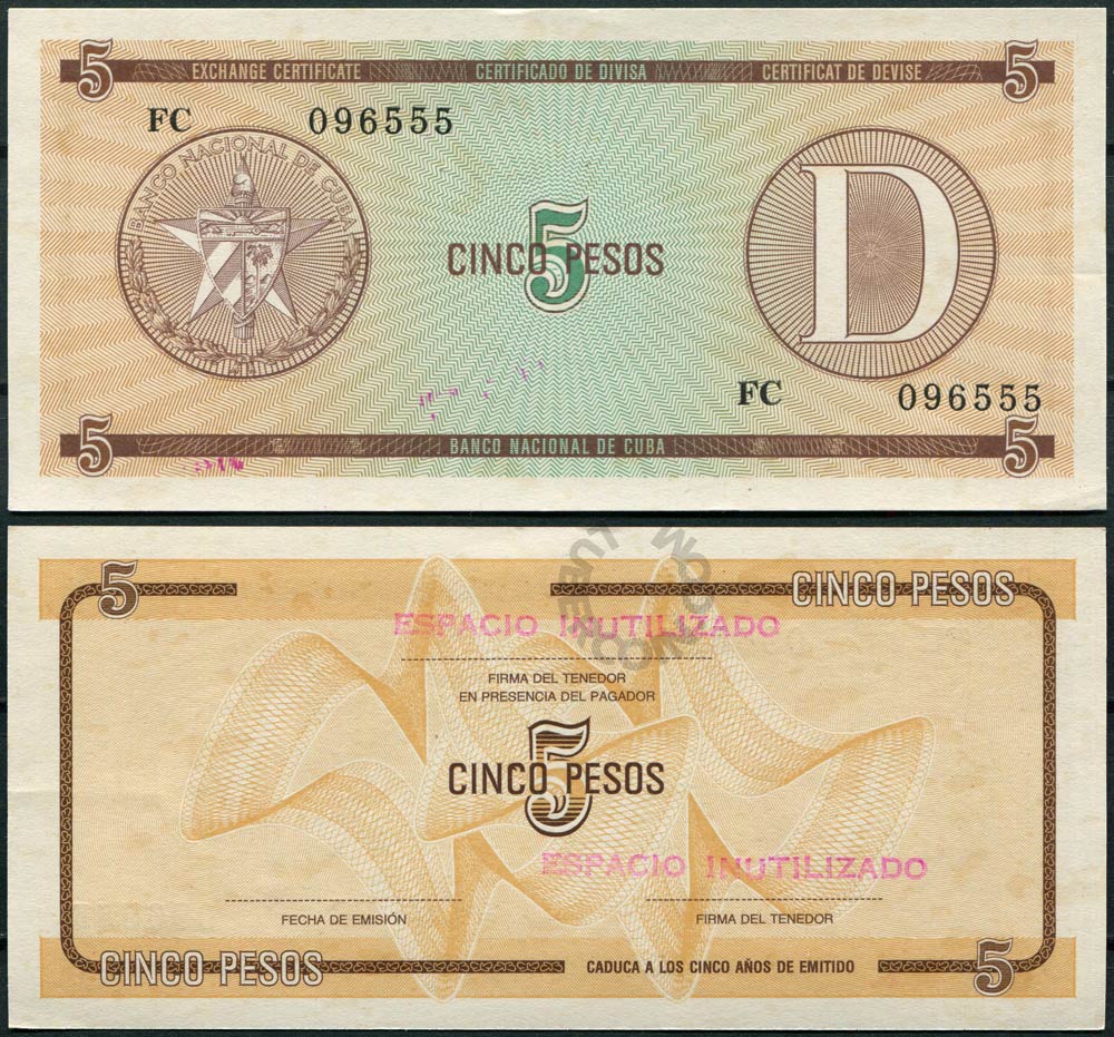 Куба набор банкнот (валютных сертификатов) 1, 3, 5, 10, 20 песо ND «D» Для студентов по обмену (5шт)