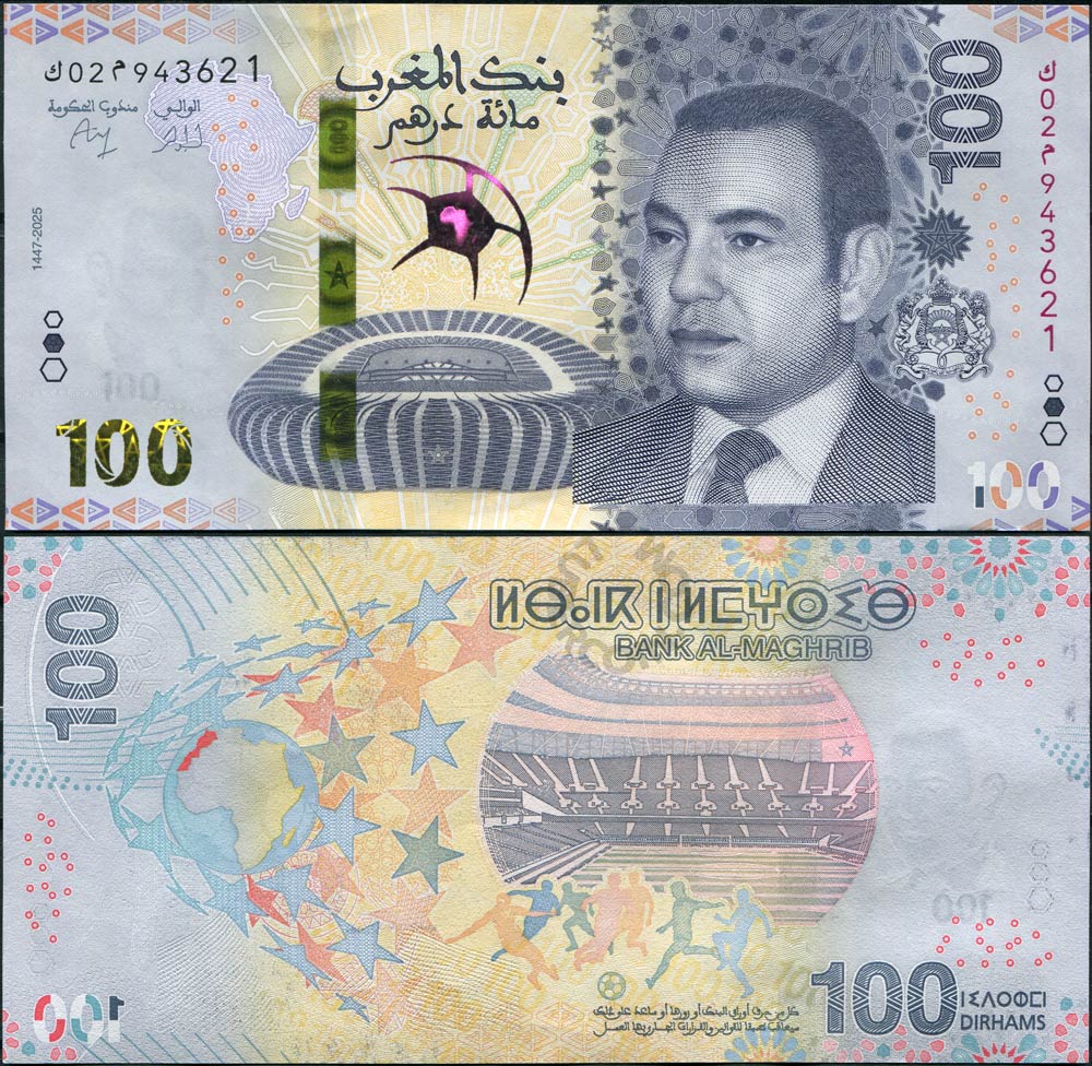 Марокко 100 дирхамов 2025 Кубок африканских наций по футболу UNC
