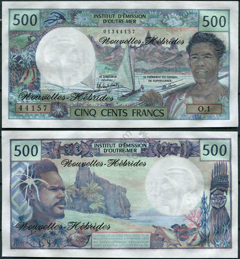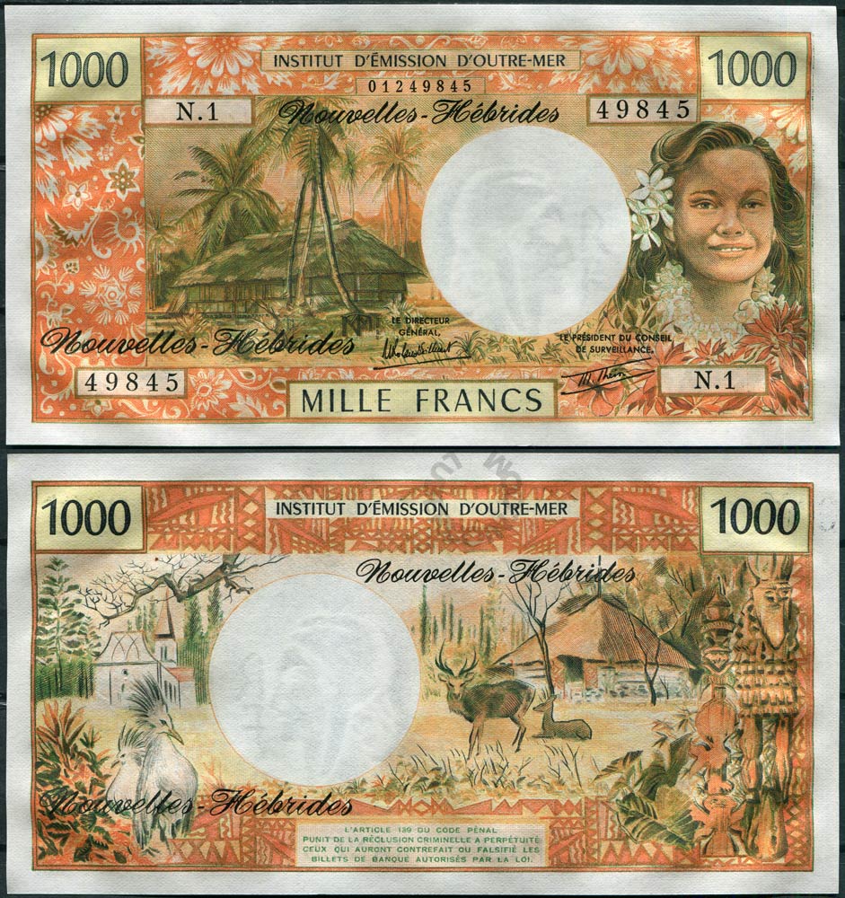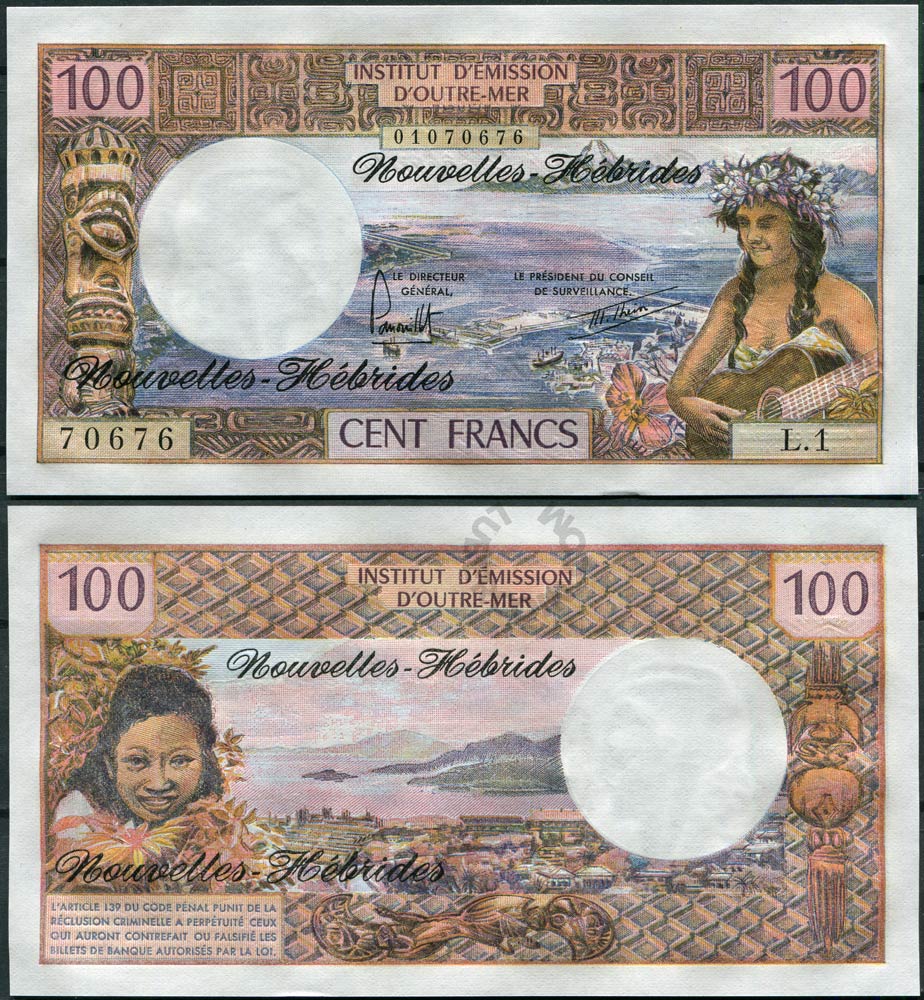 Новые Гебриды набор банкнот 100, 500, 1000 франков ND (1970—1980) (3 банкноты) UNC
