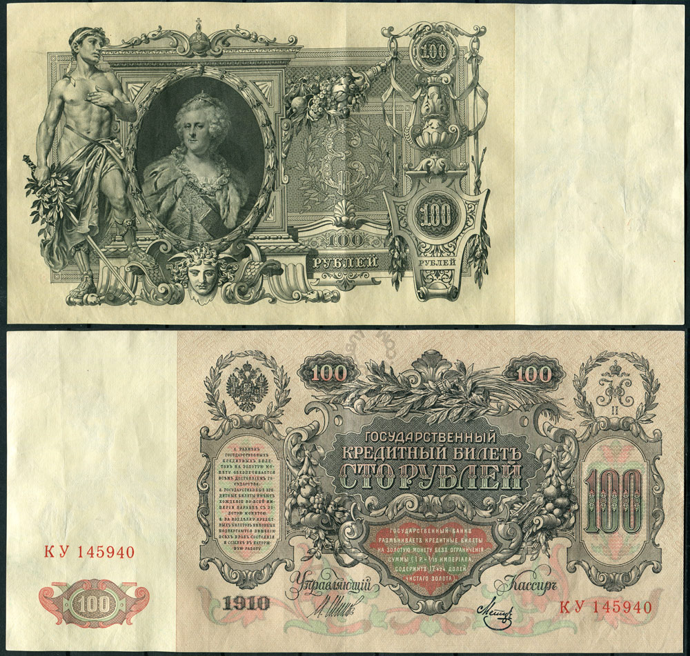 100 рублей 1910 Советское правительство Шипов - Метц • КУ 145940 (Промытая) 256х121 мм.