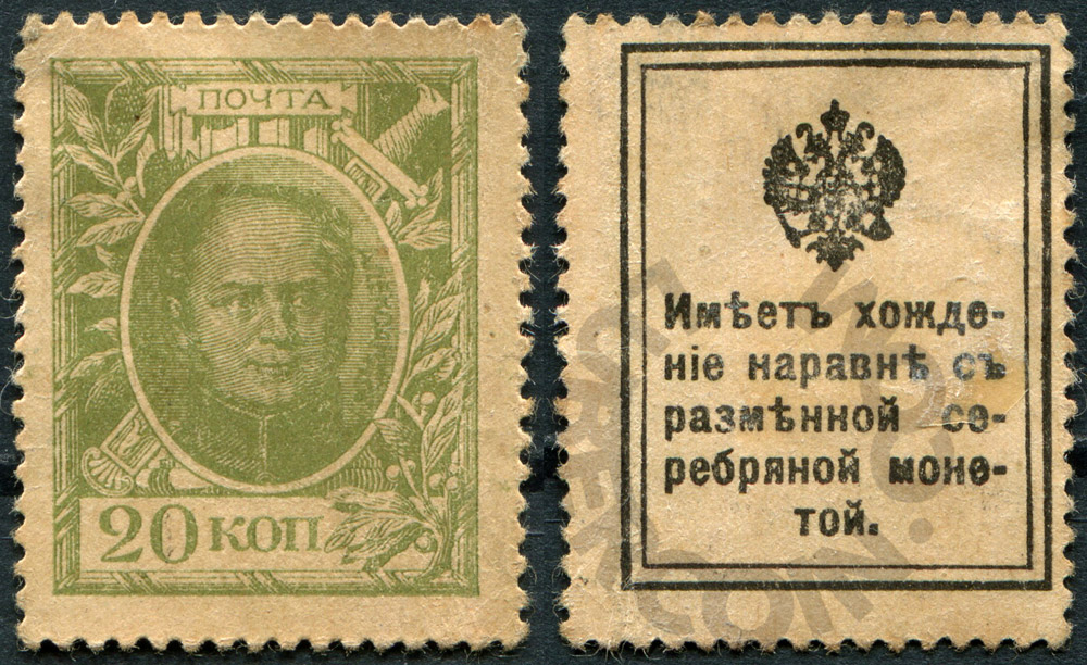 20 копеек ND (1915) Деньги-марки. Первый выпуск (00046561)