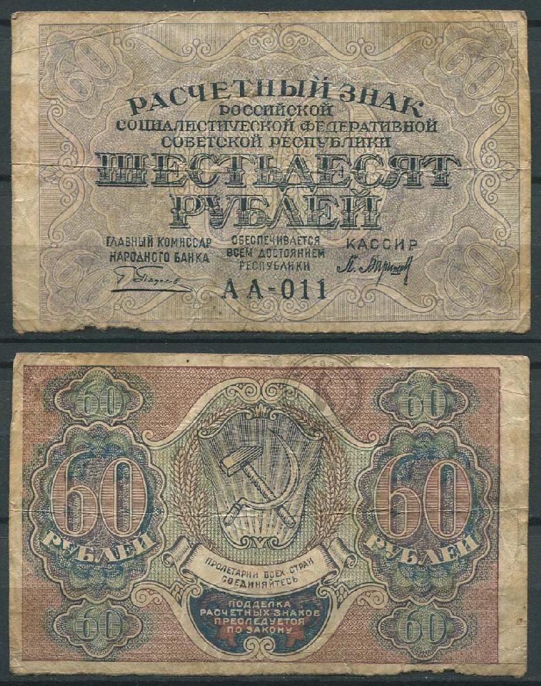 60 рублей 1919 АА - 011 (00022297)