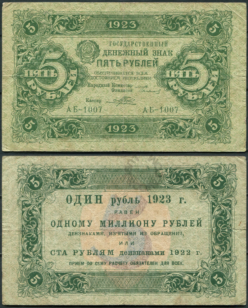 5 рублей 1923 1-й выпуск АБ - 1007 Порохов (00046239)